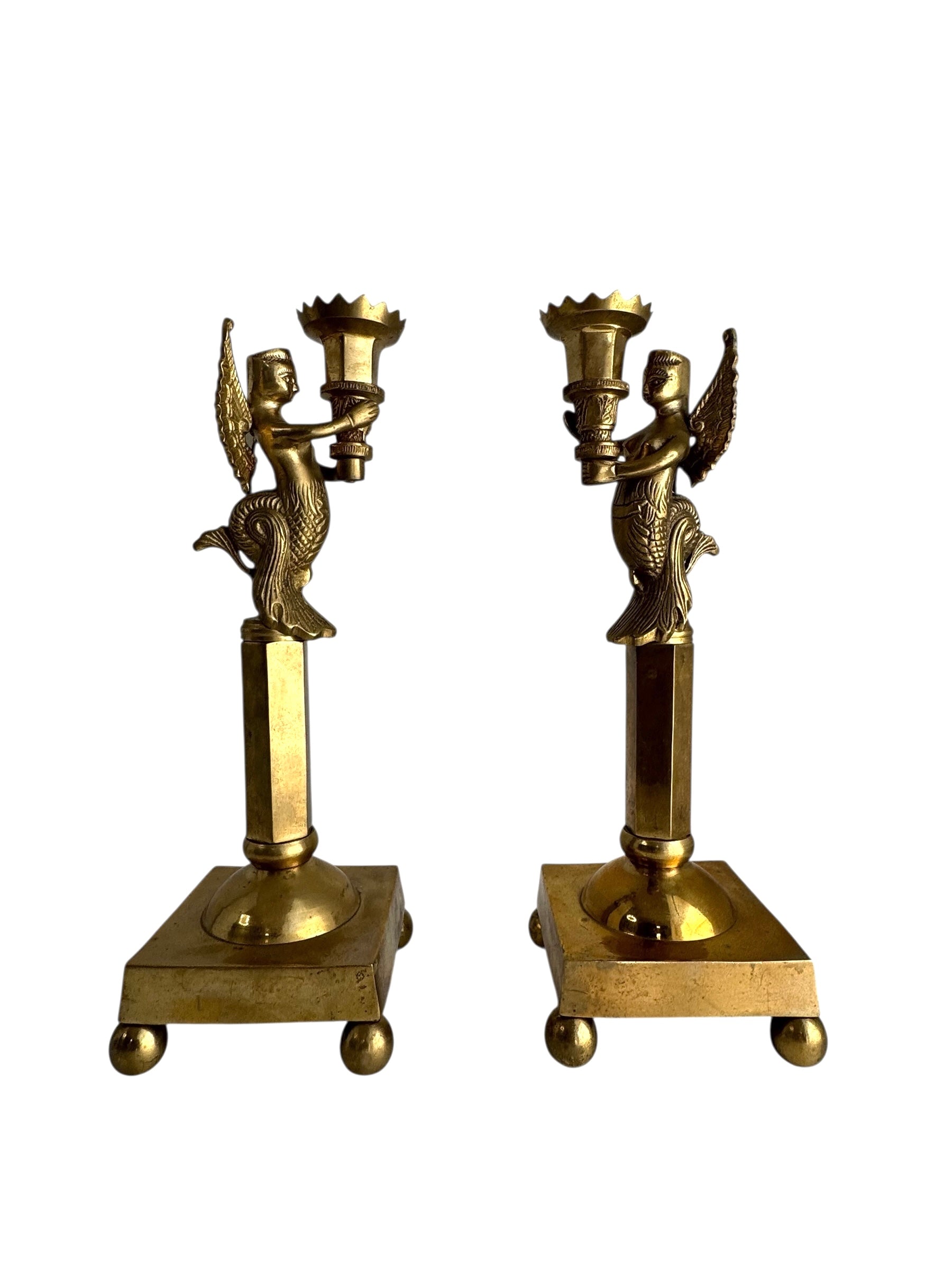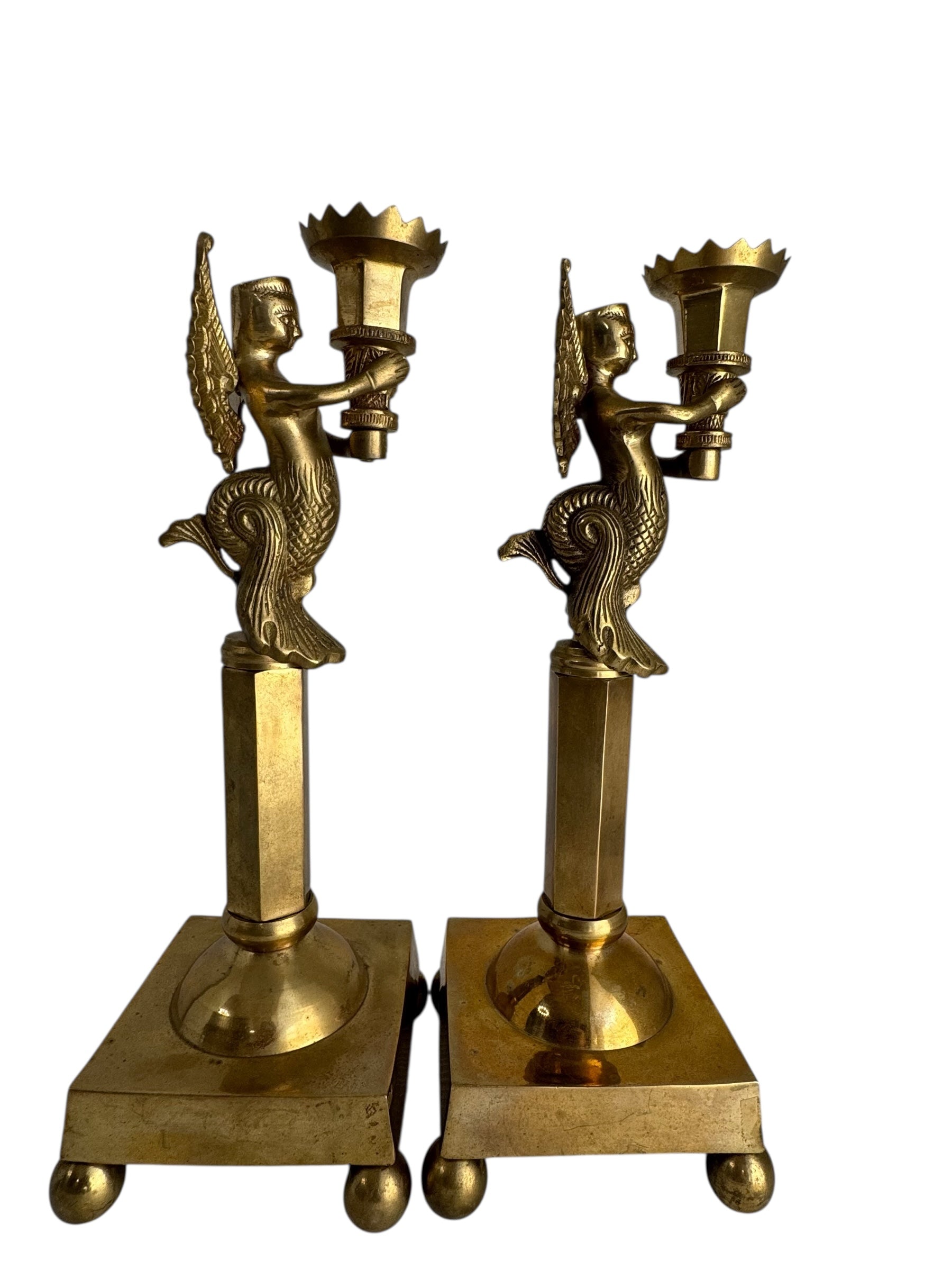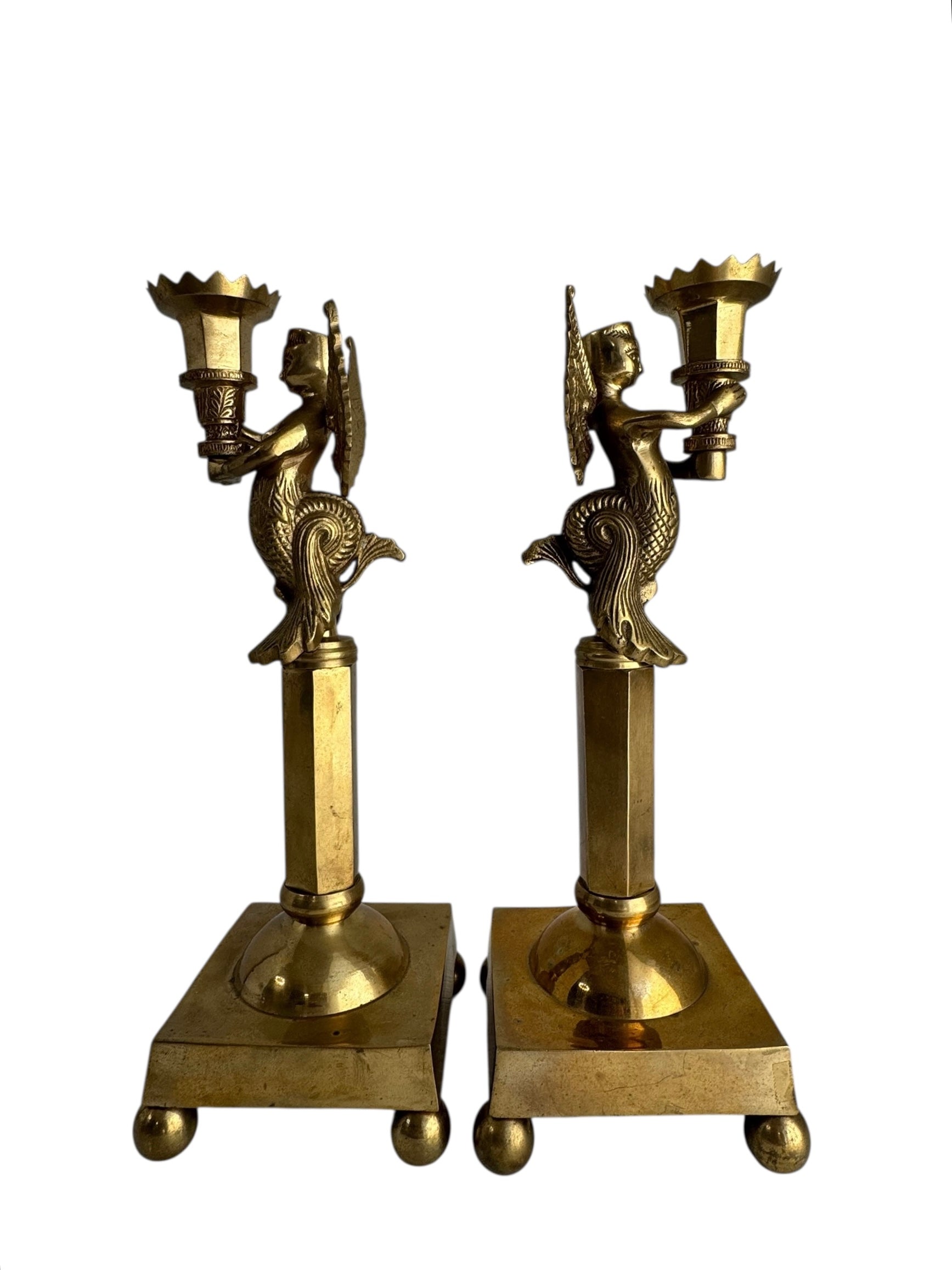 Pair of Winged Mermaid Candle Holders (Melusine Figures)