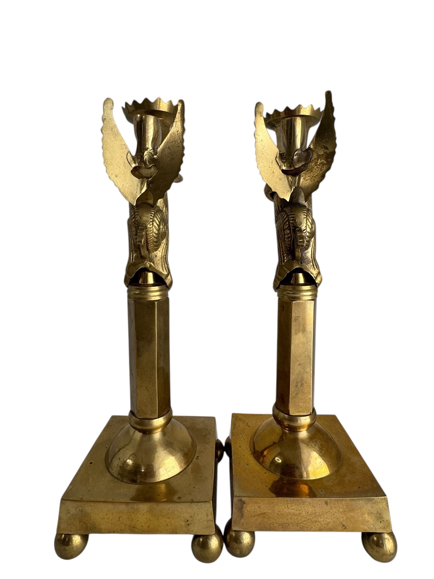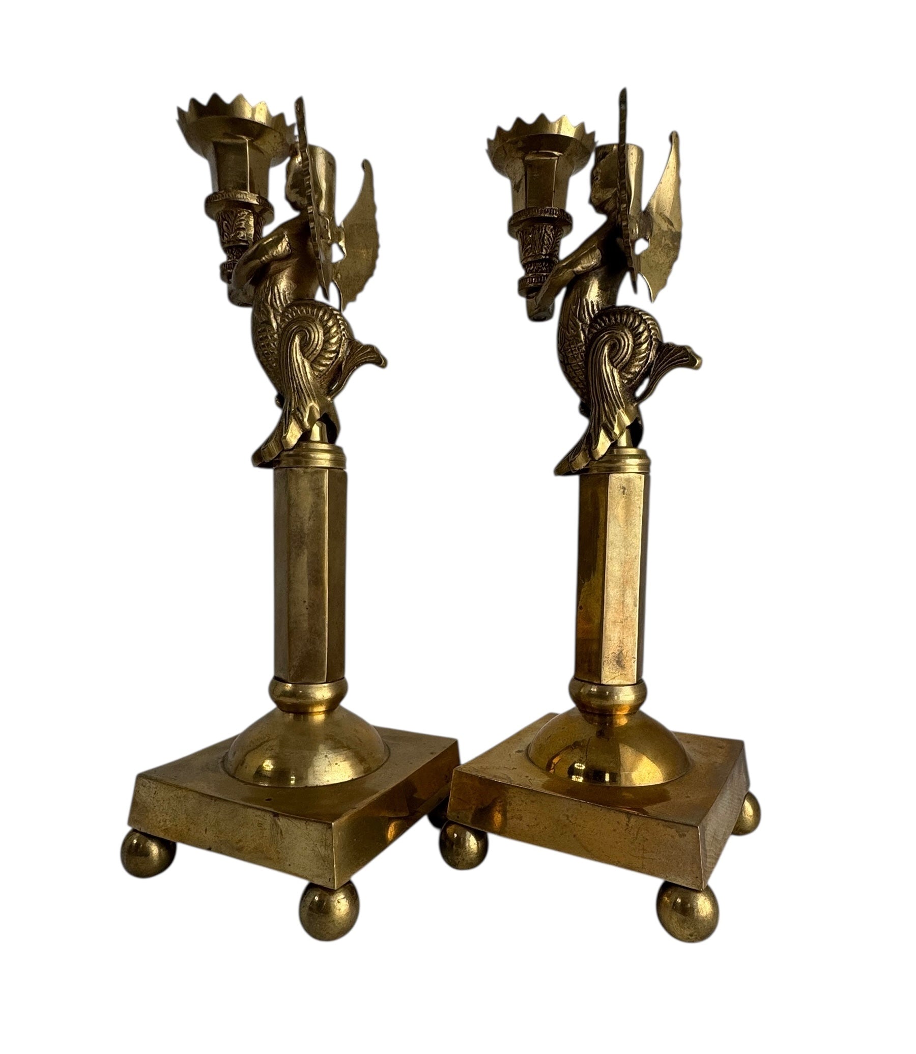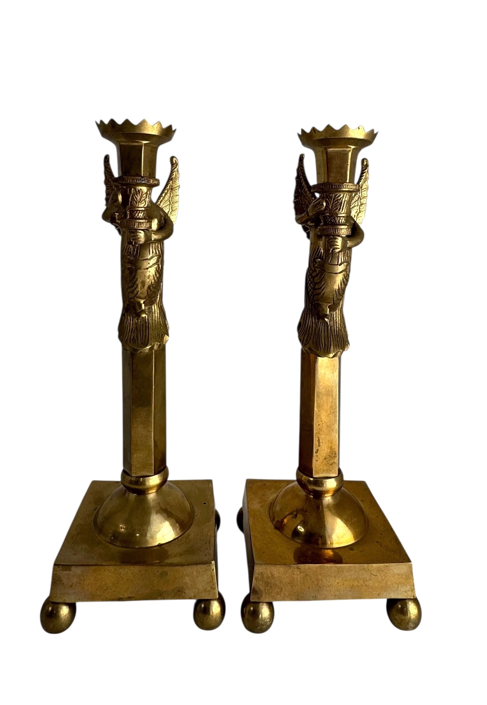 Vintage Brass Winged Sphinx Candleholders-A Pair