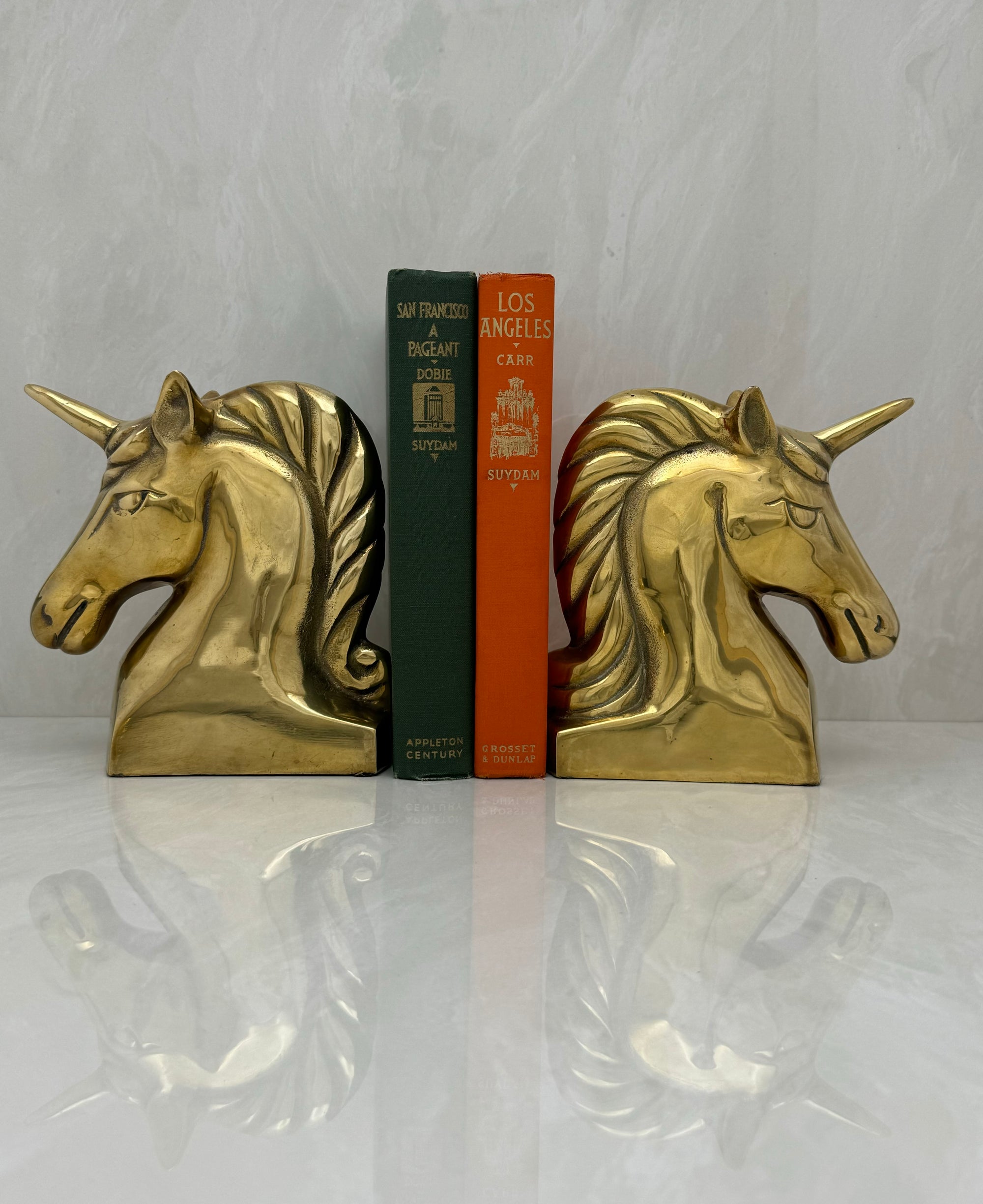 Vintage Dolbi Cashier Brass Unicorn Bookends (1980s)