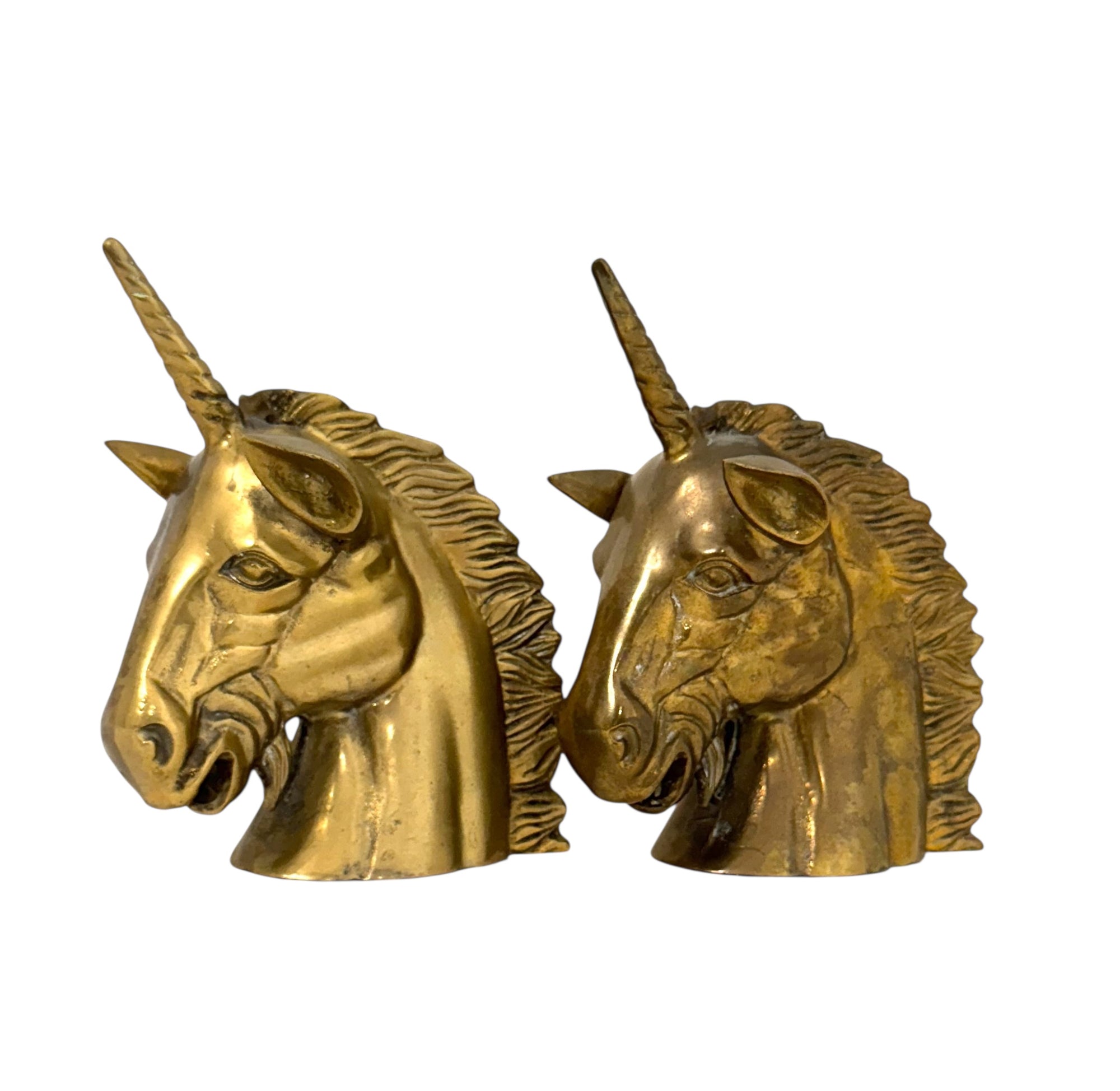 Vintage Brass Unicorn Heads-A Pair