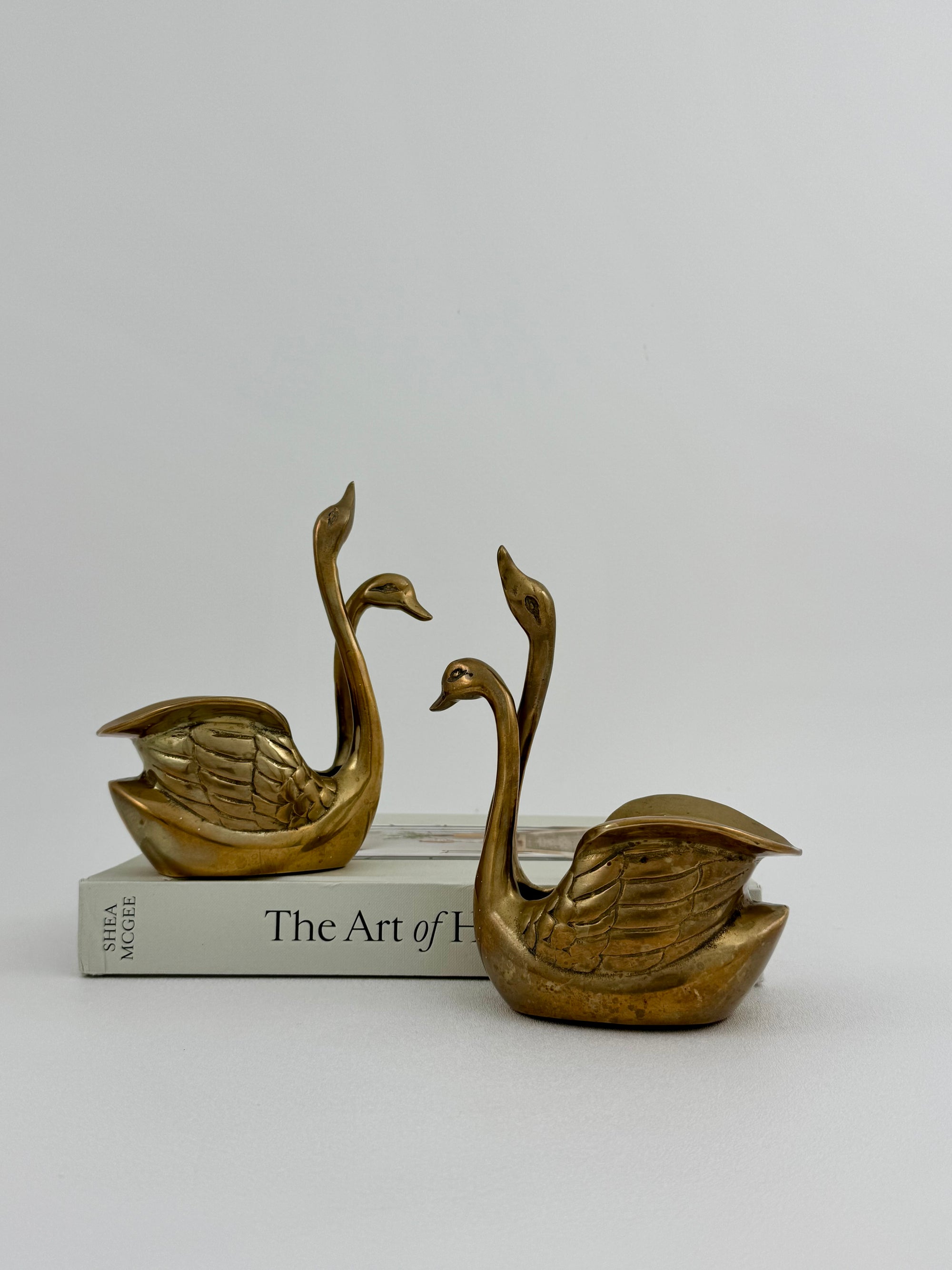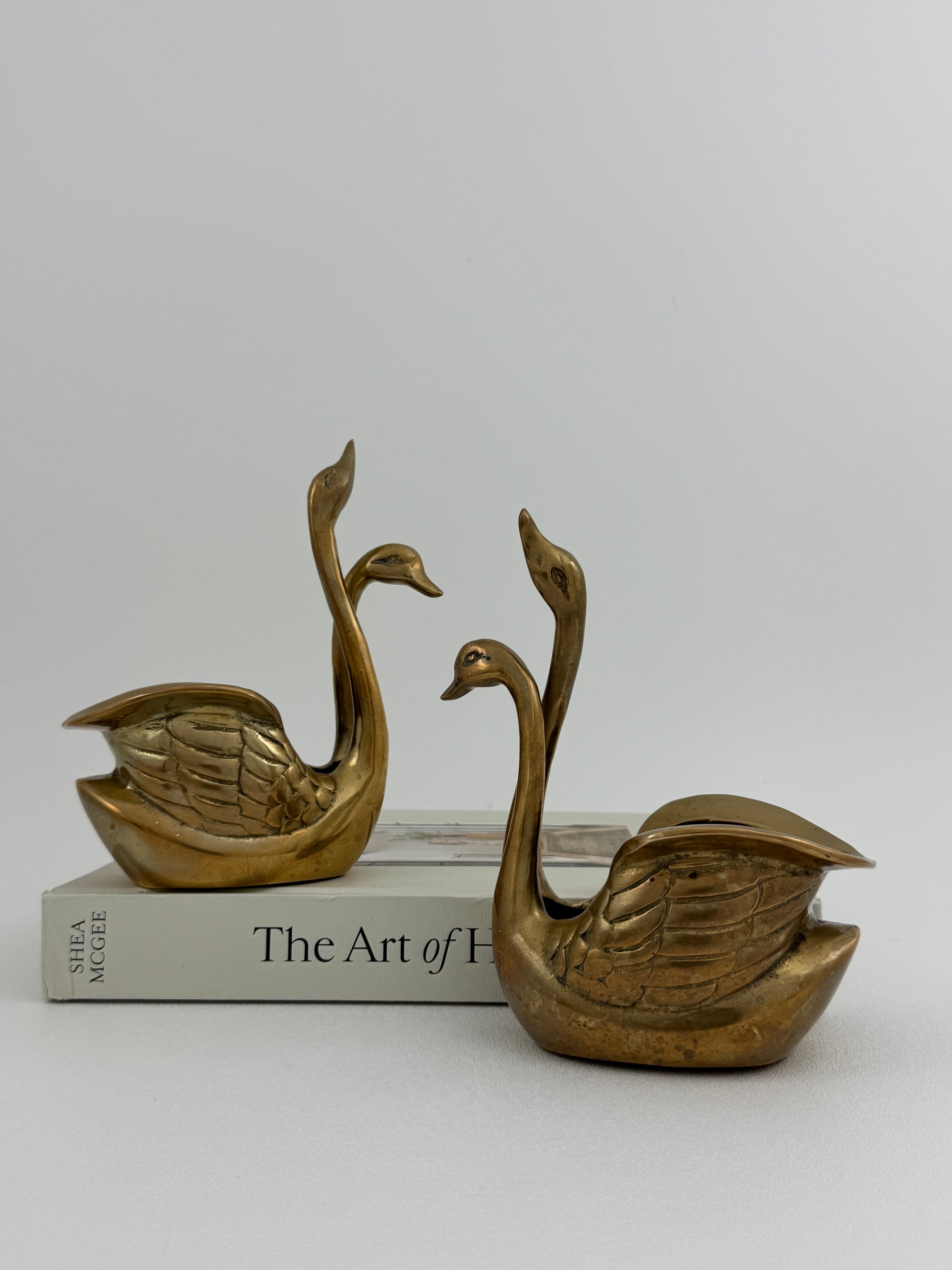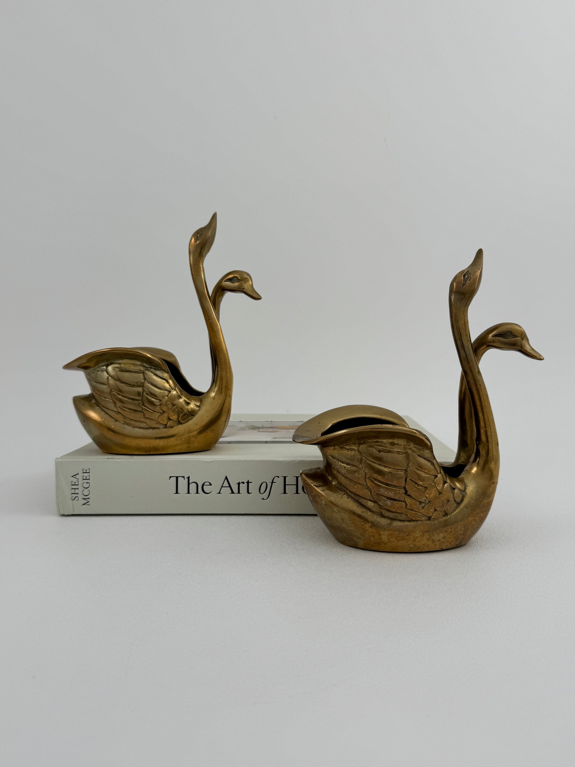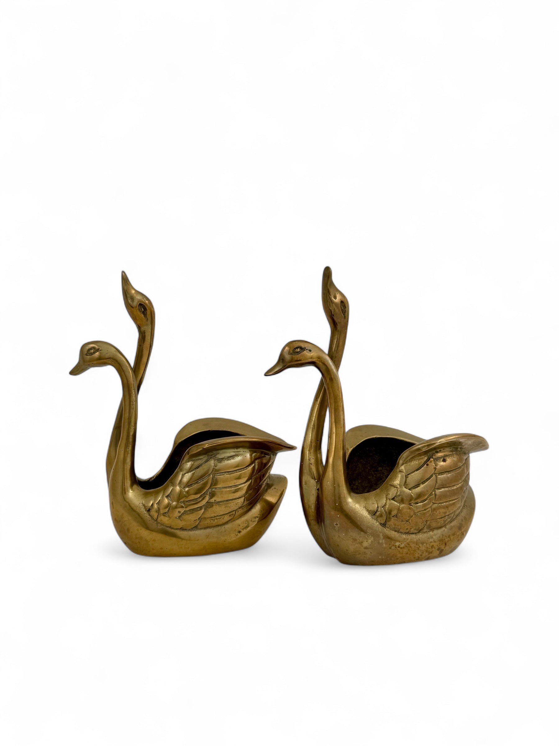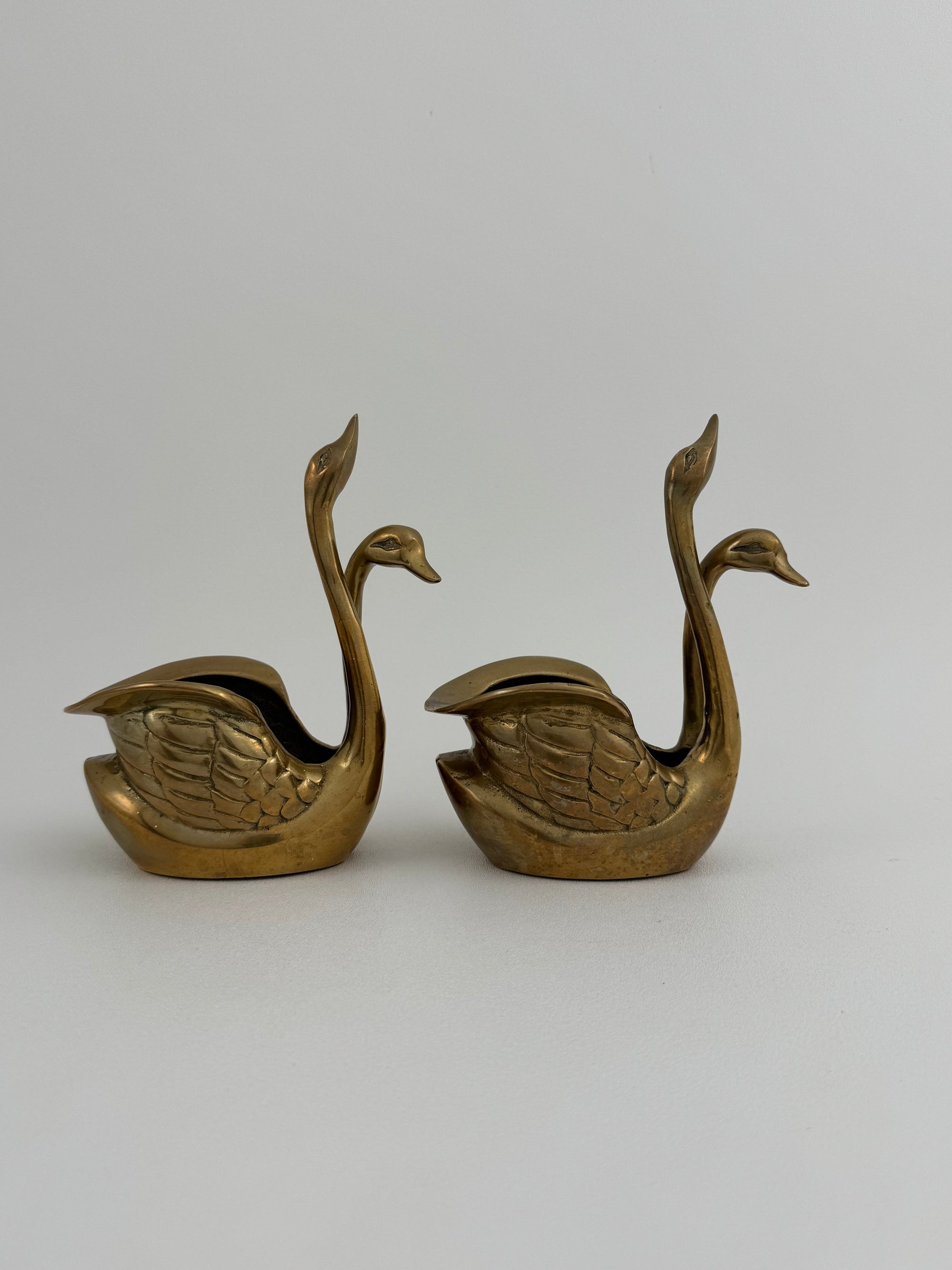 Small Pair of Vintage Brass Double Swan Planters – Hollywood Regency Stash Pots – 7”
