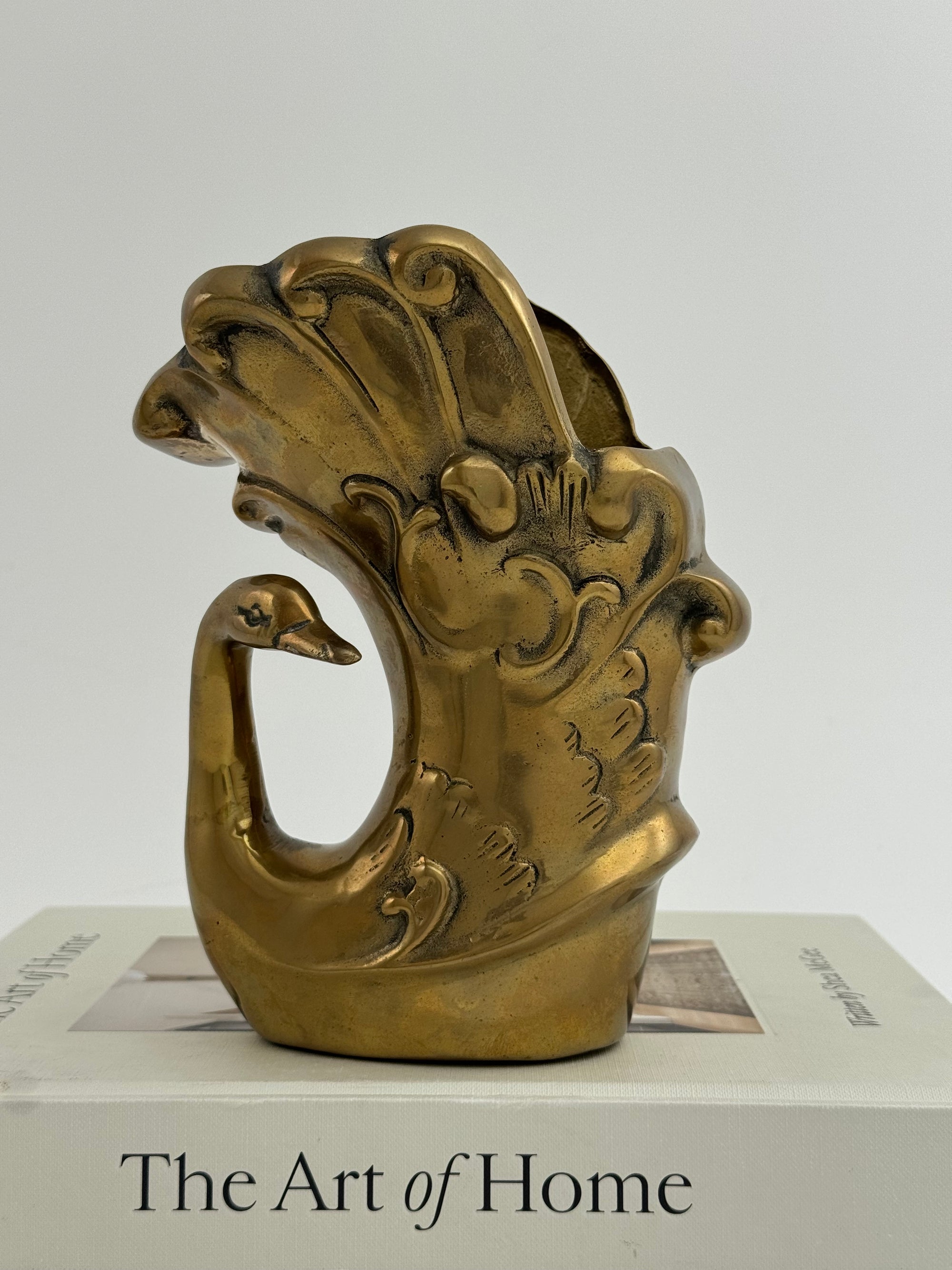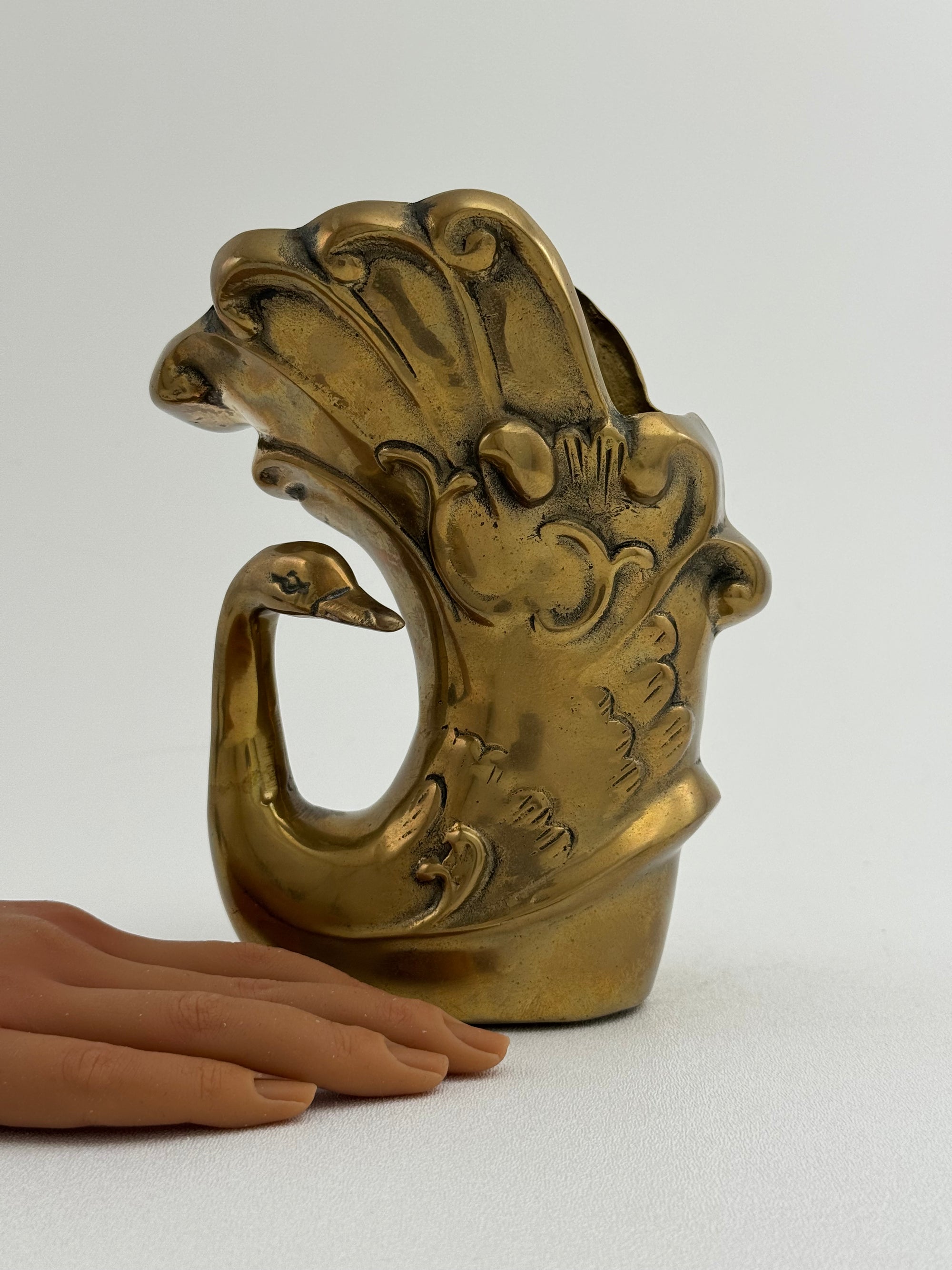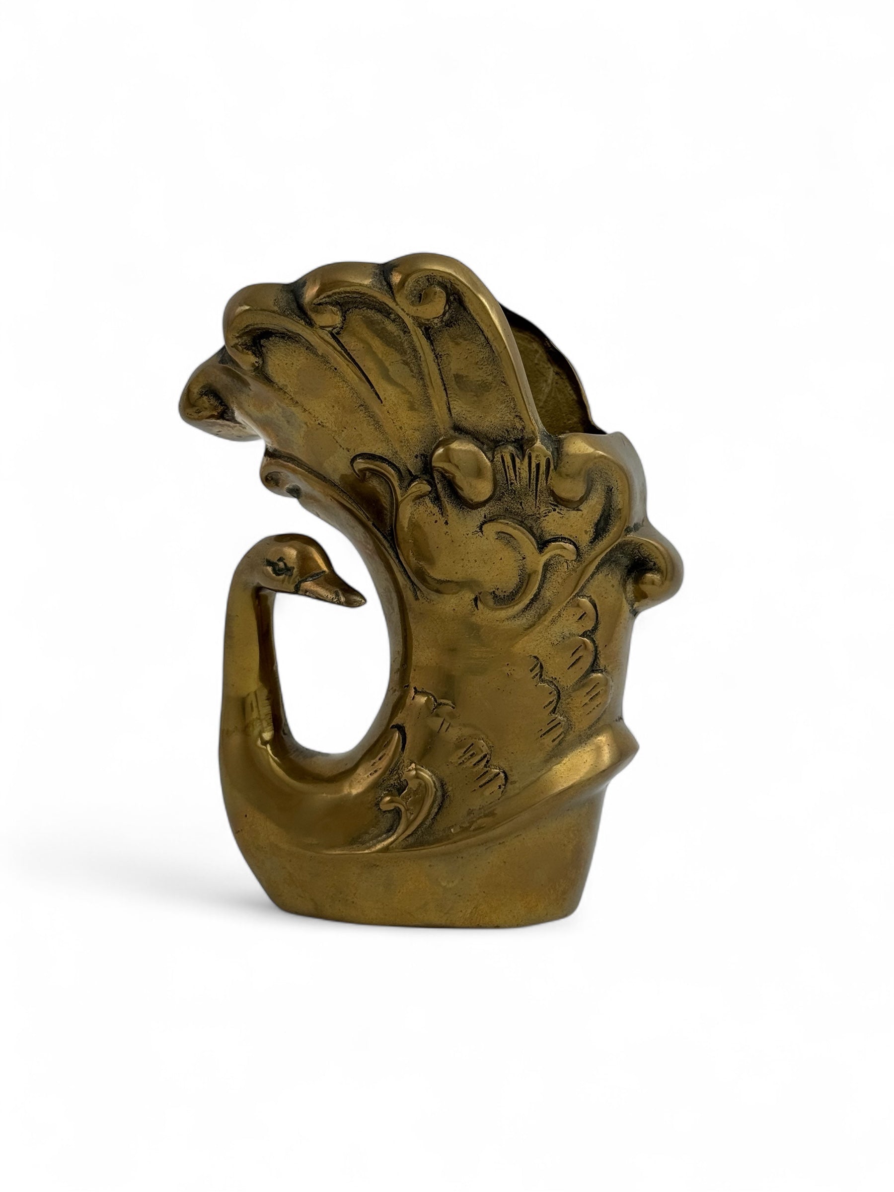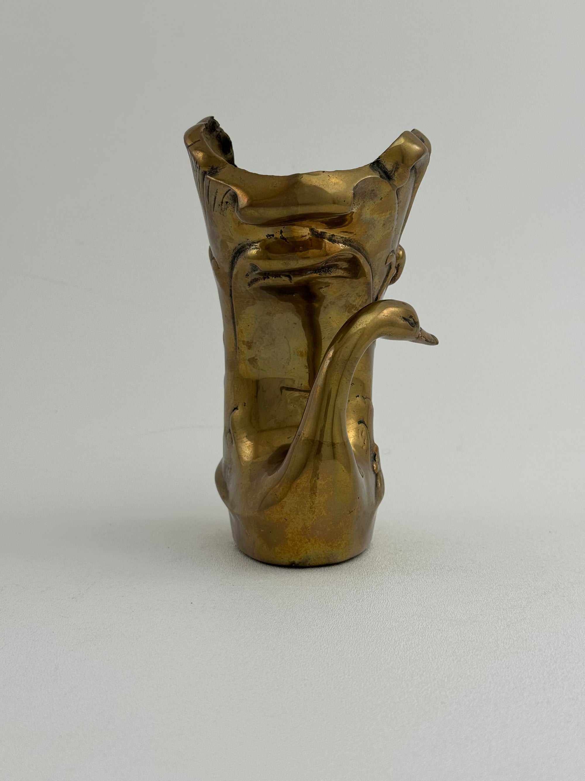 Vintage Brass Swan Vase / Cachepot (7.75”)