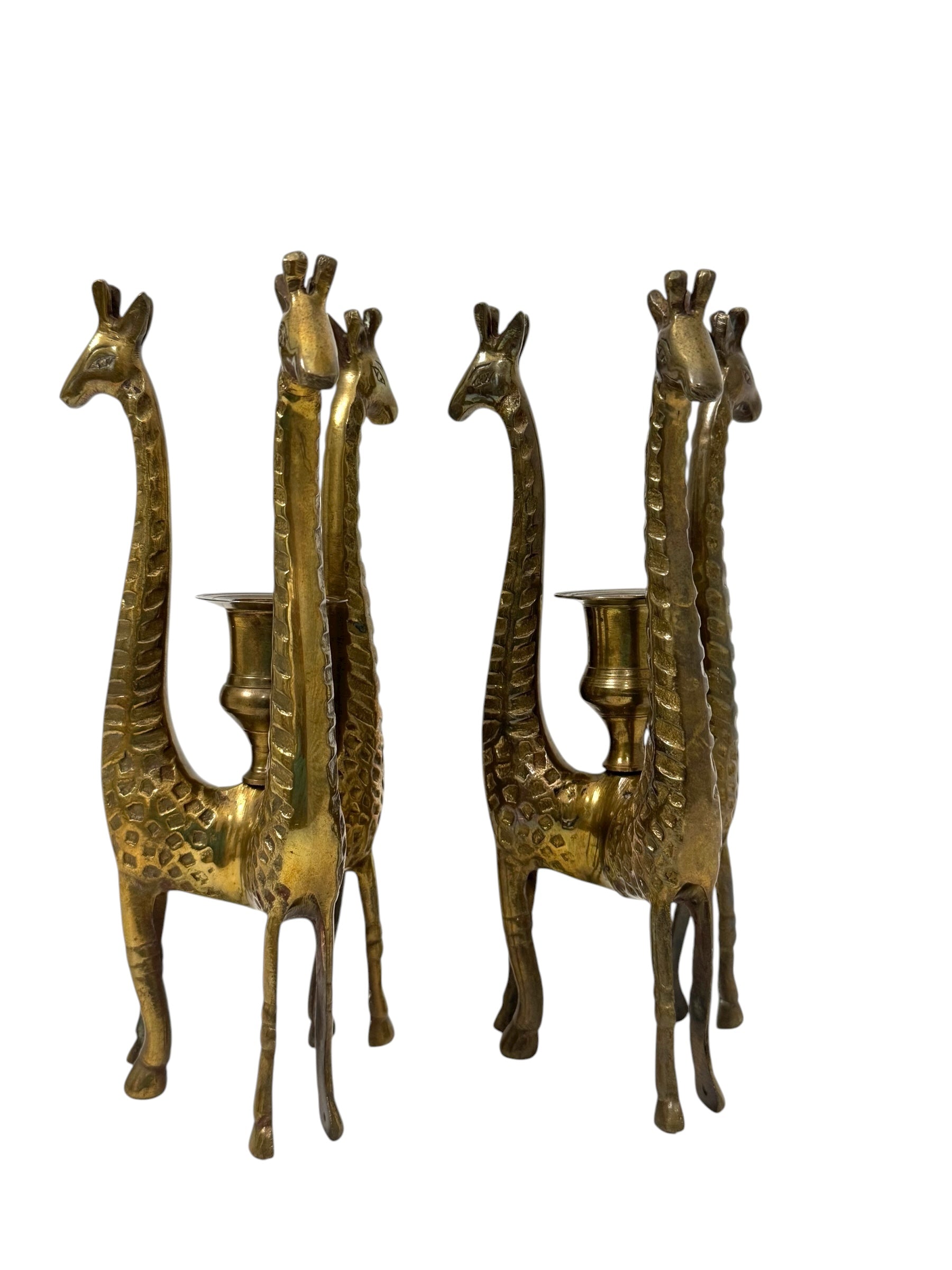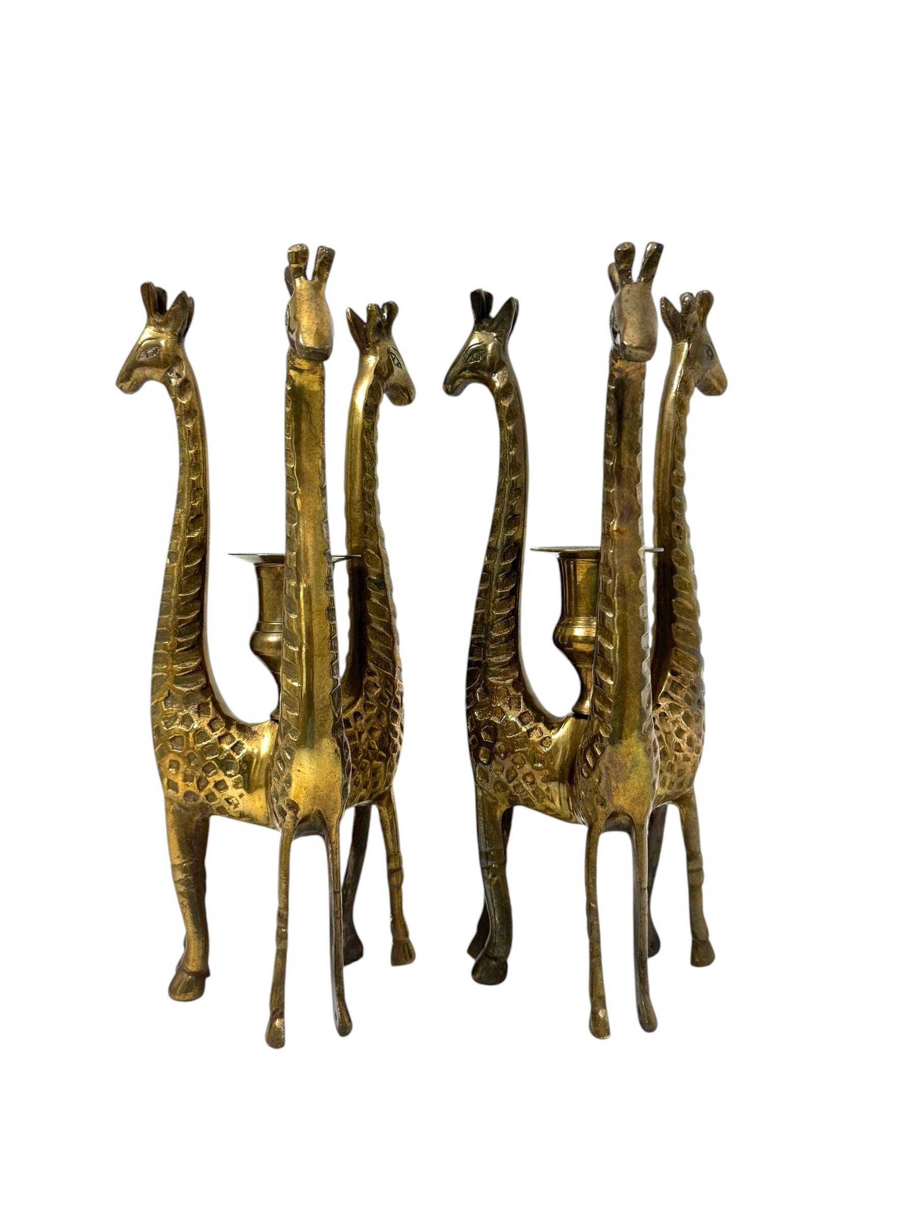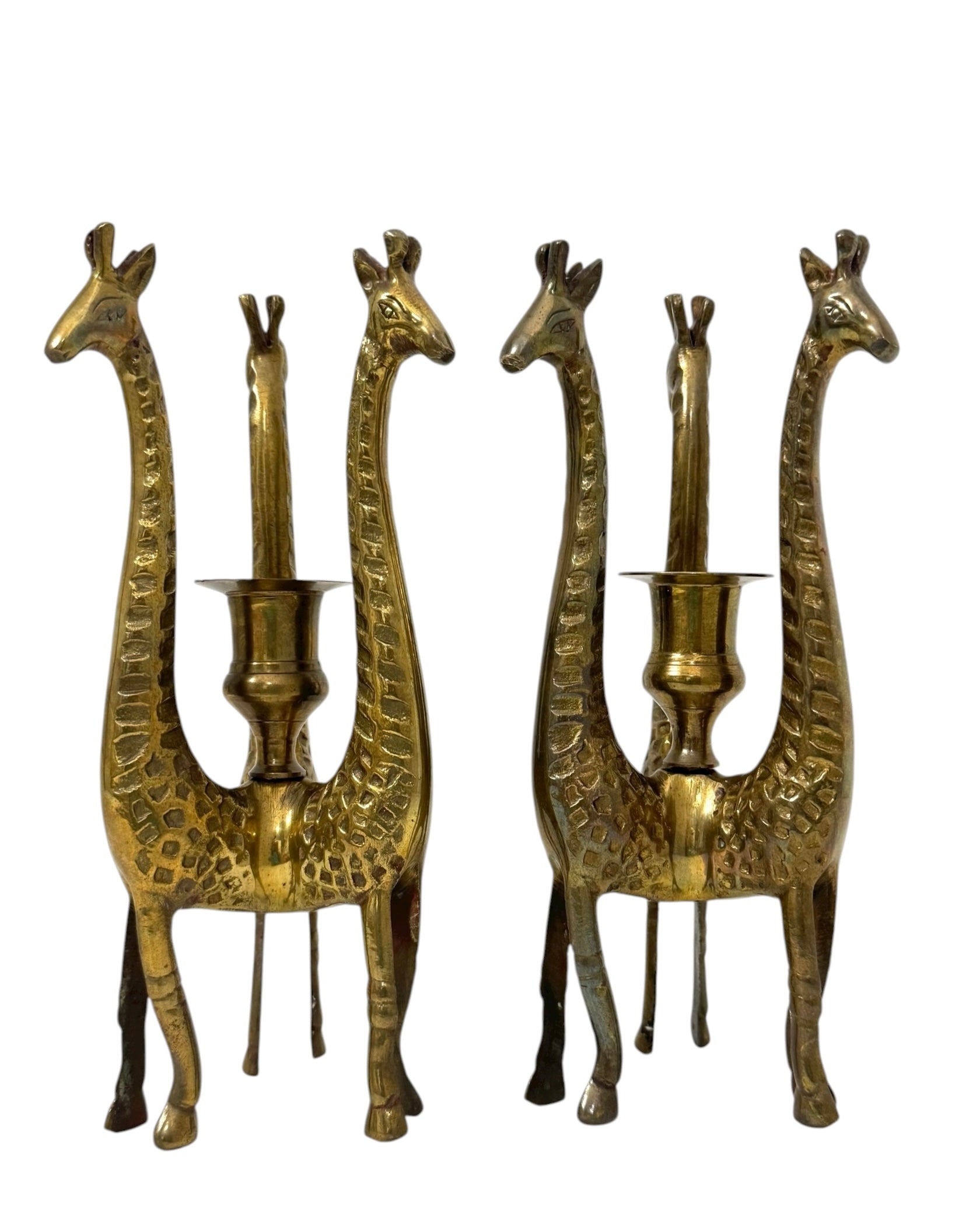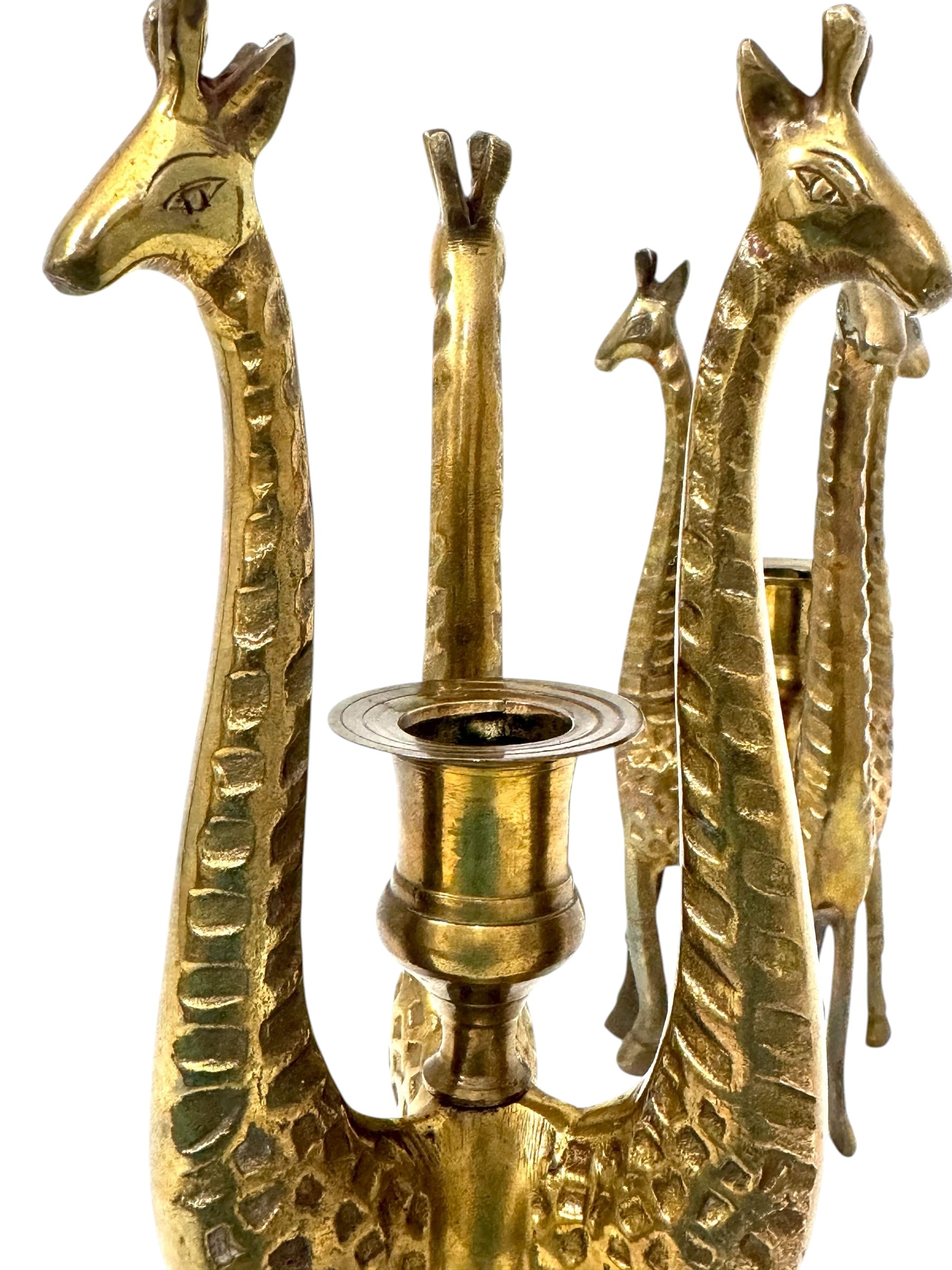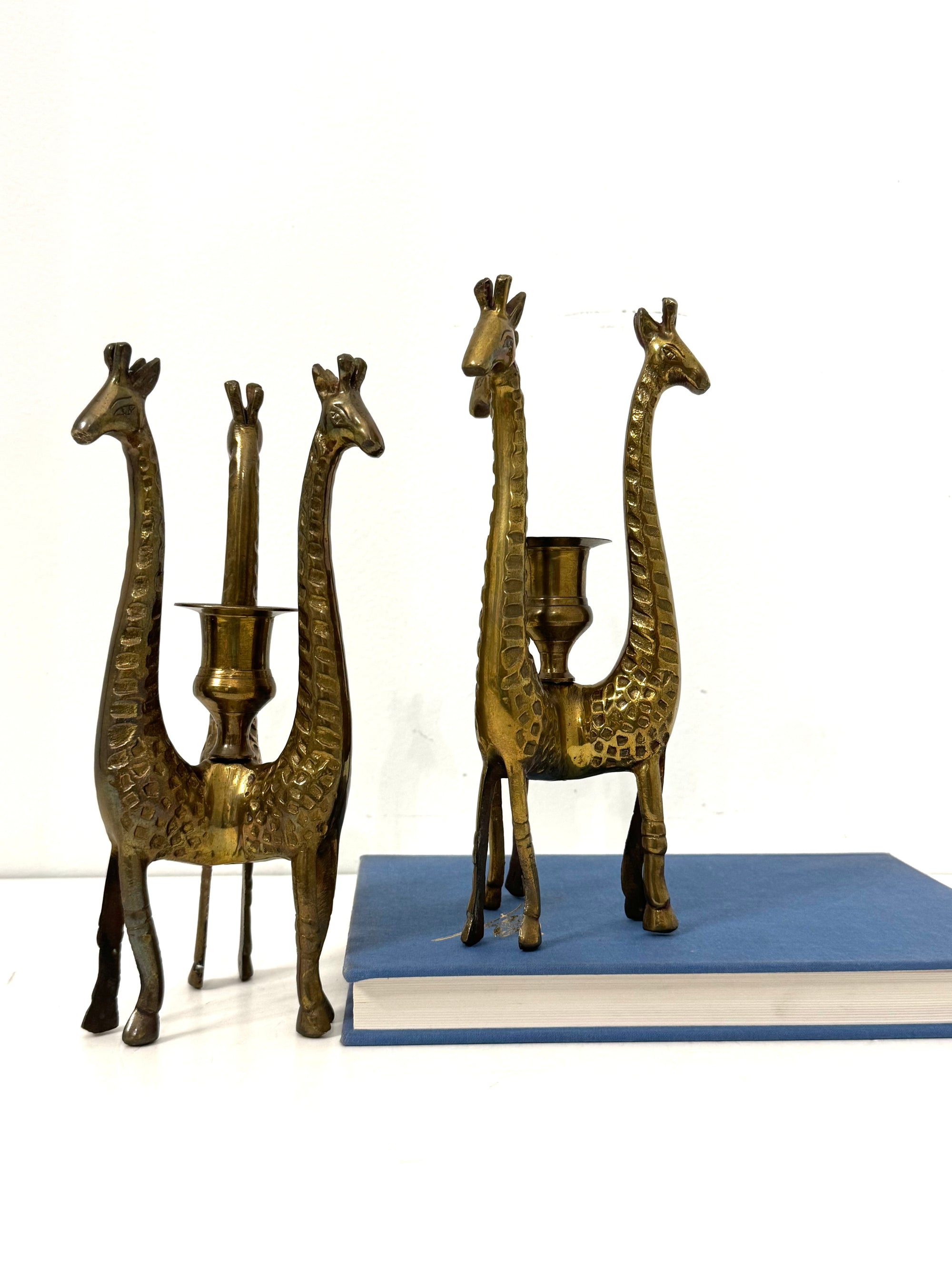 Vintage Brass Giraffe Candle Holders | Mid-Century Modern Safari Glam Pair