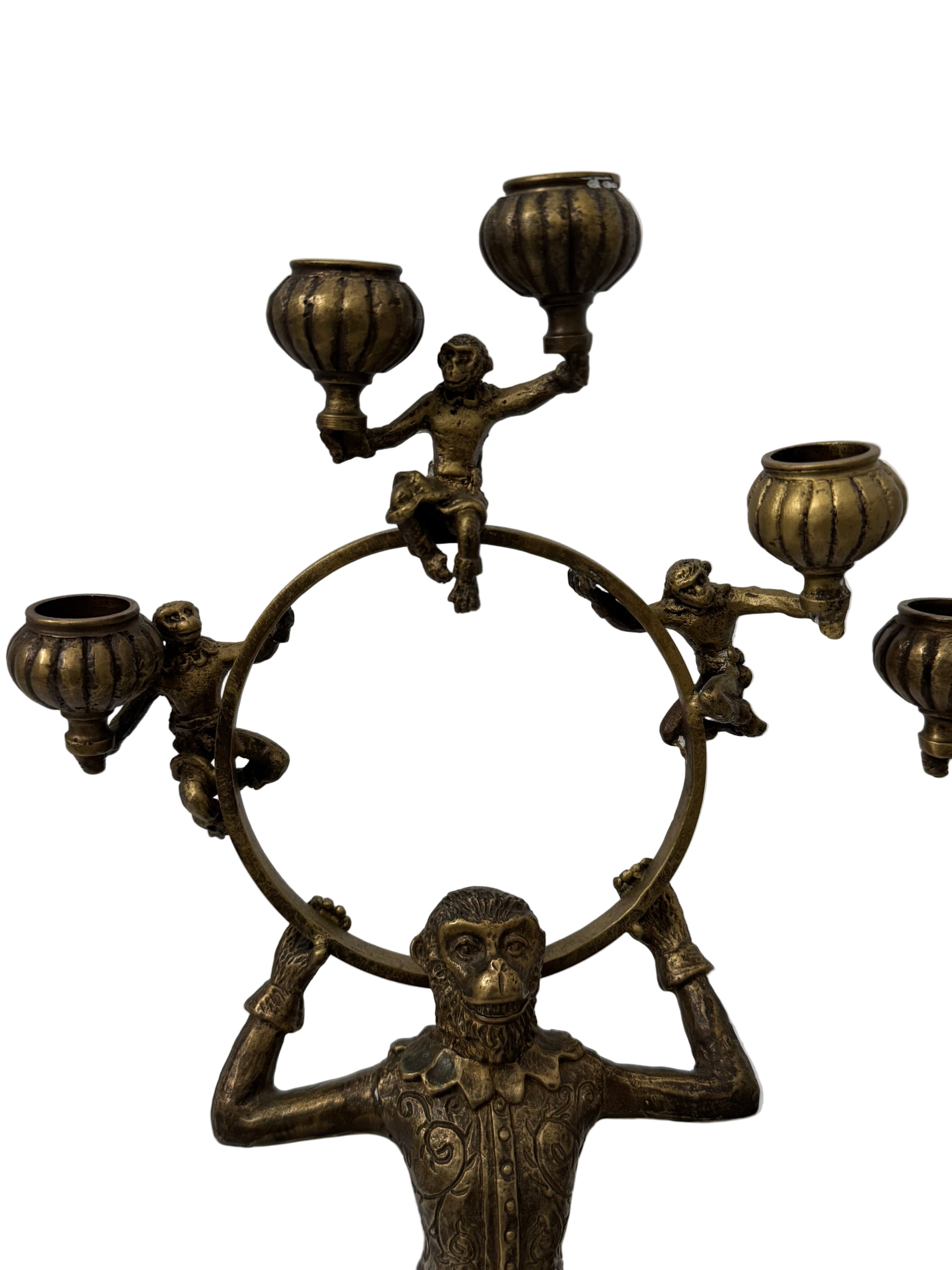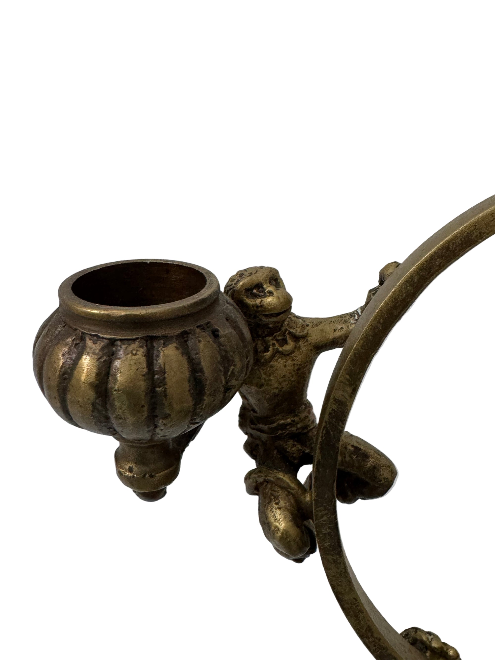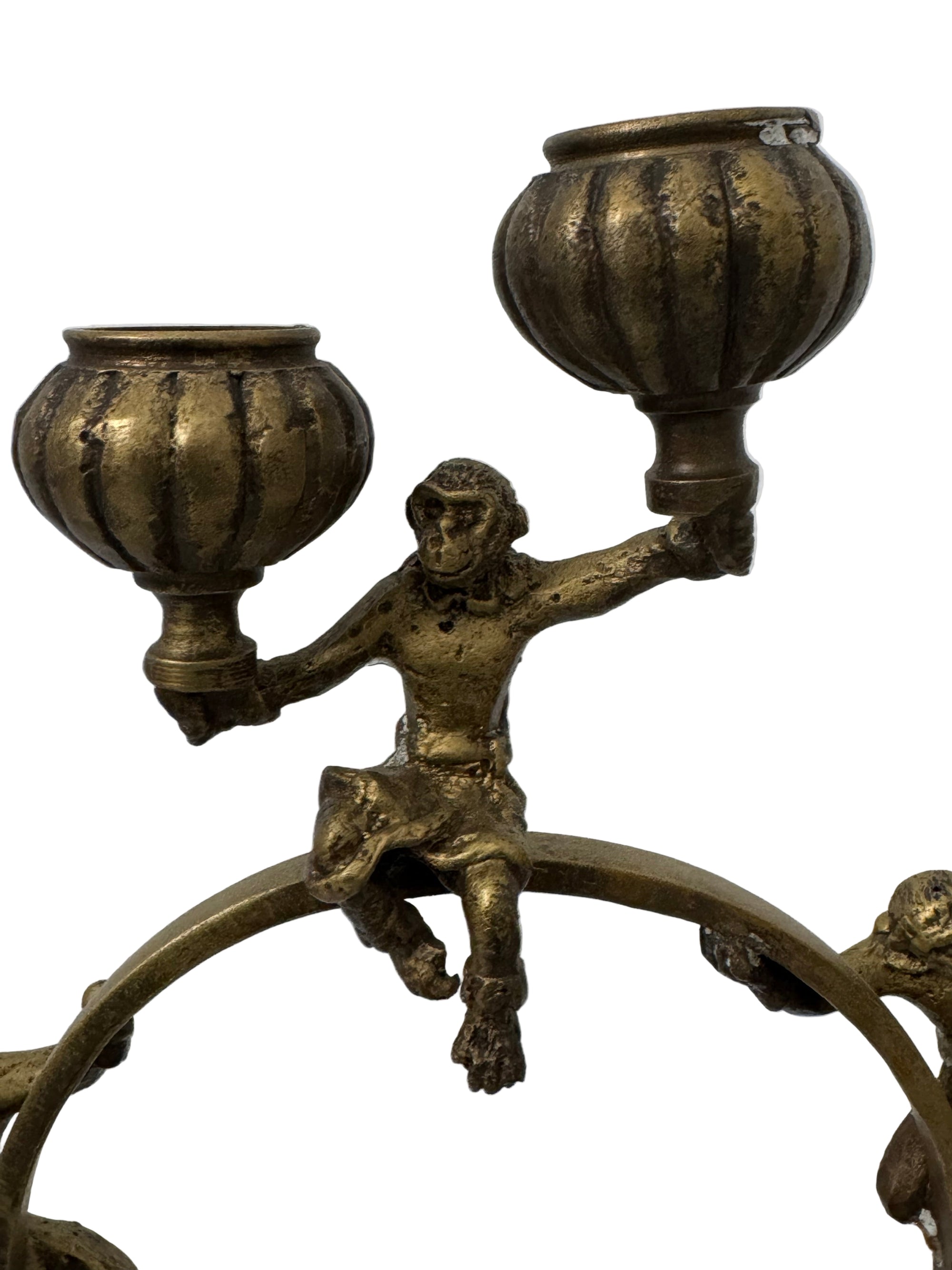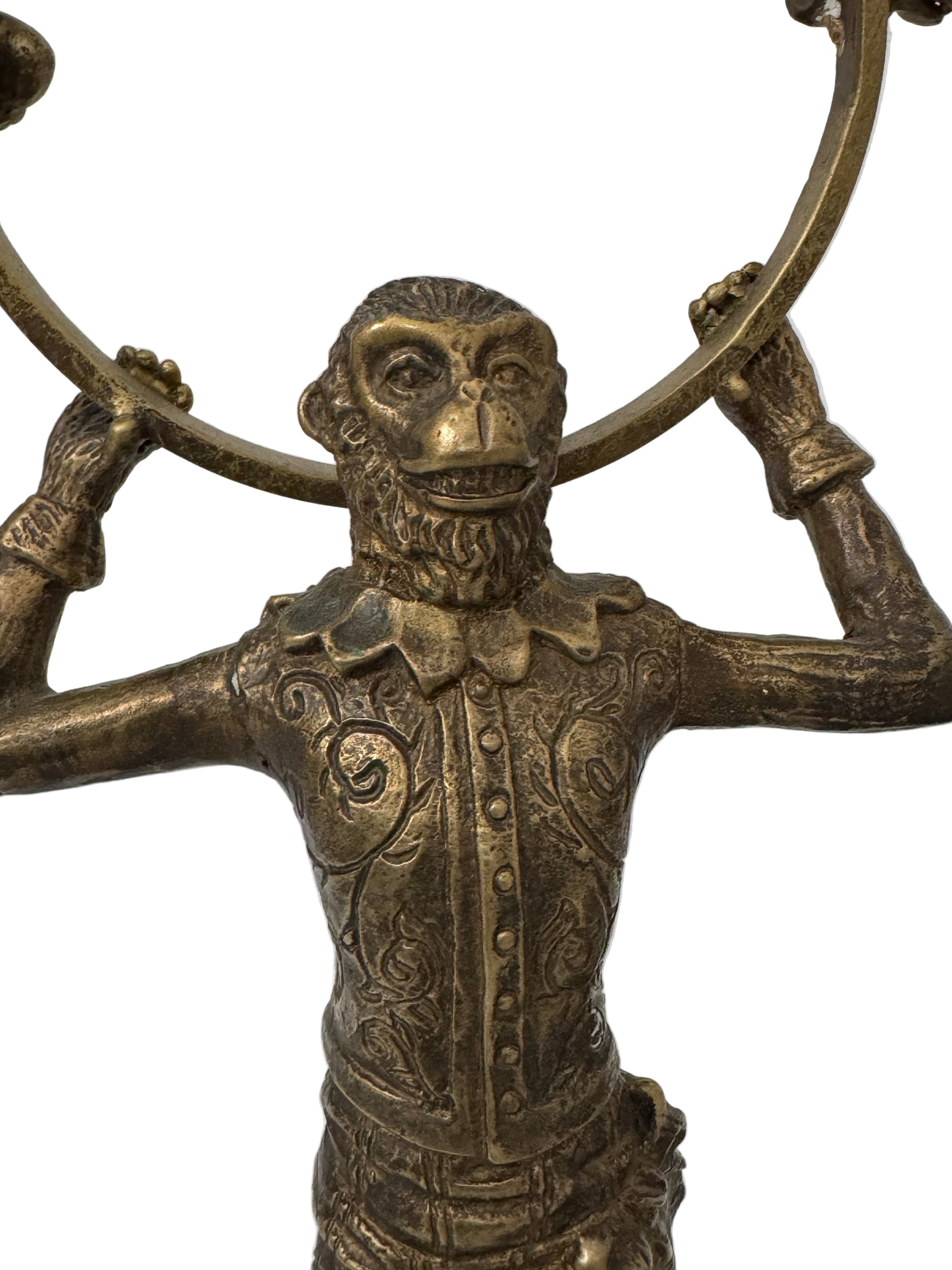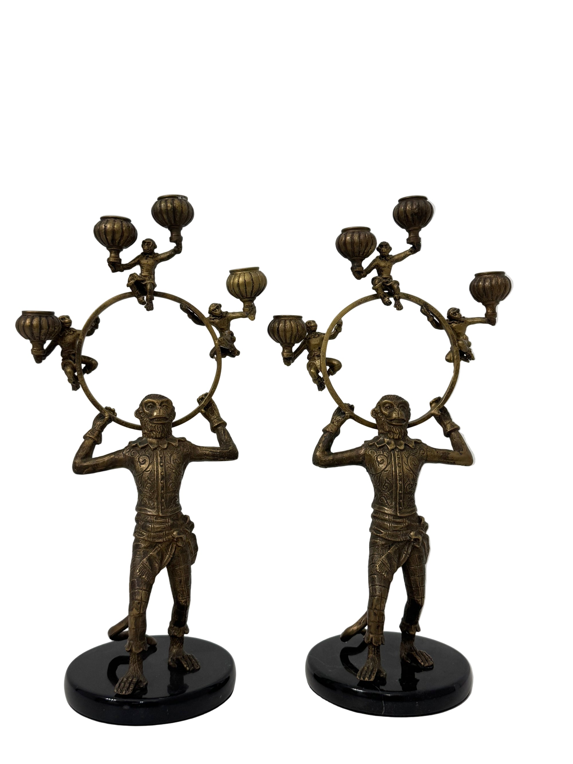 Vintage Brass Monkey Candleholders on Black Marble Bases | Mid-Century Exotic Pair