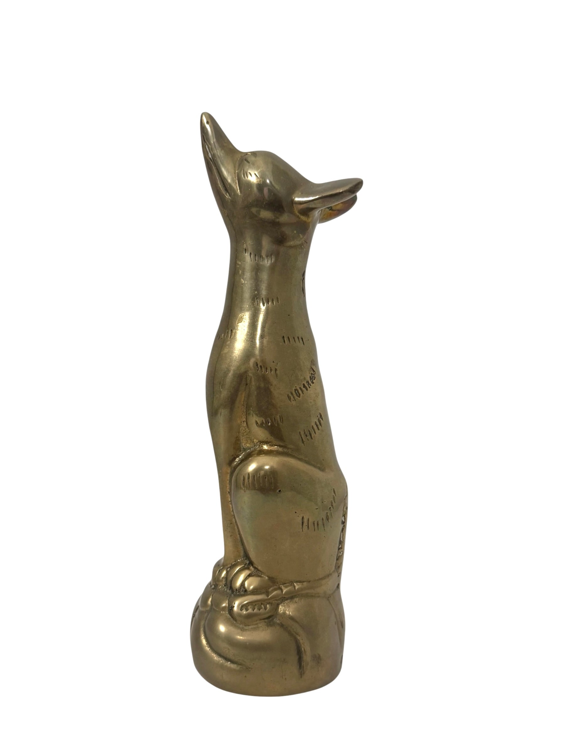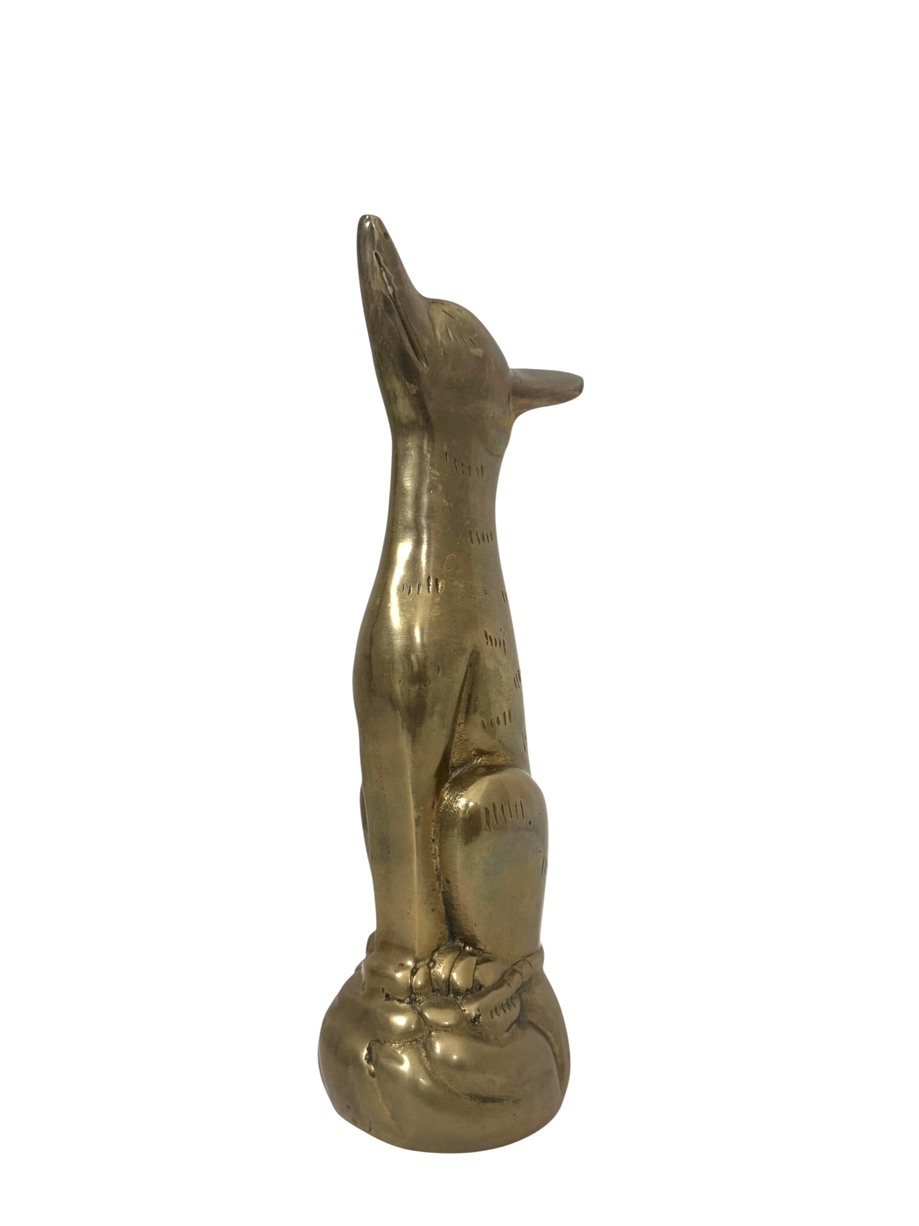 Vintage Brass Howling Coyote Sculpture (Fox/Wolf Style) – Mid-Century Modern Brass Animal Figurine | Hollywood Regency Decor