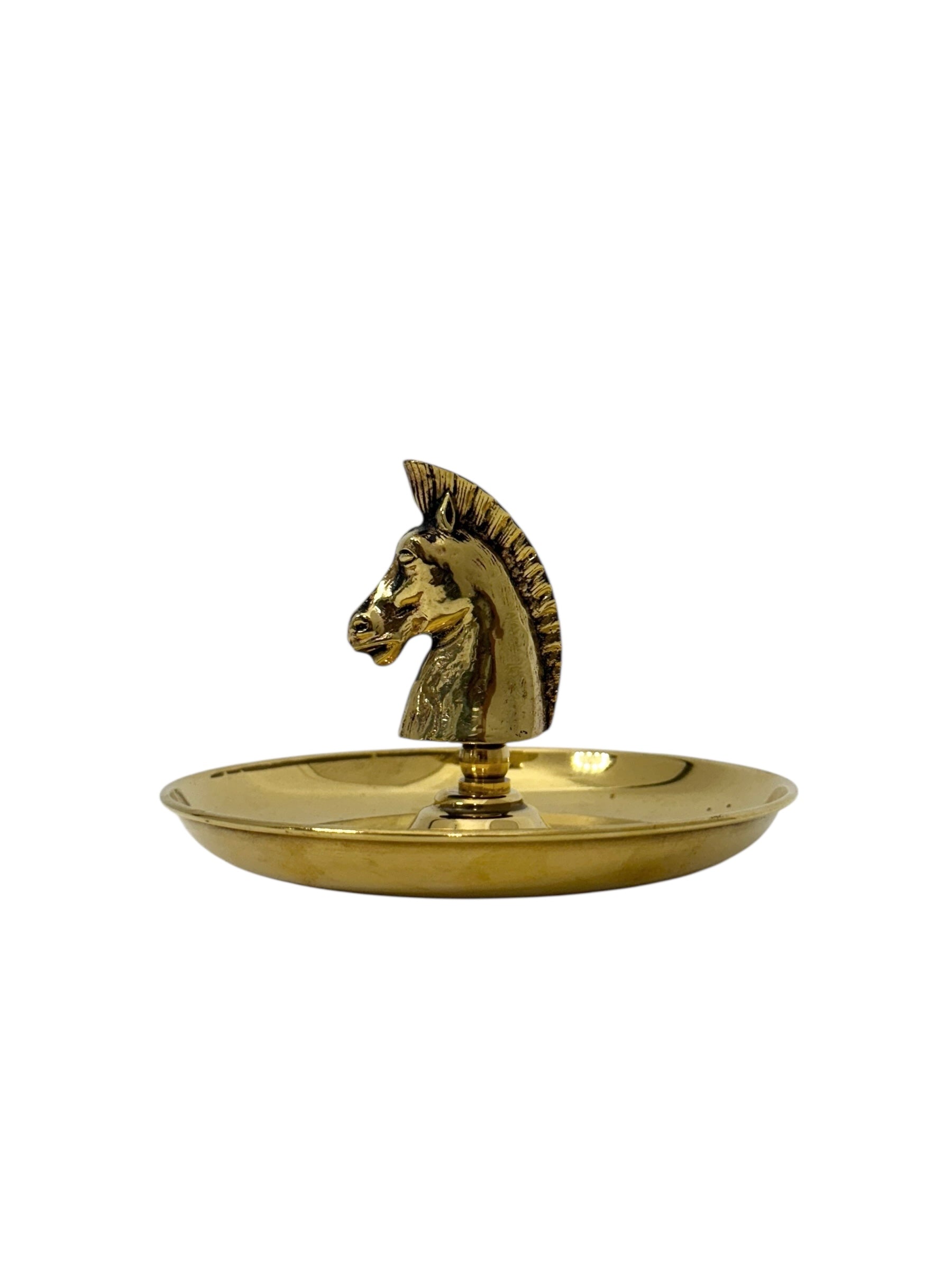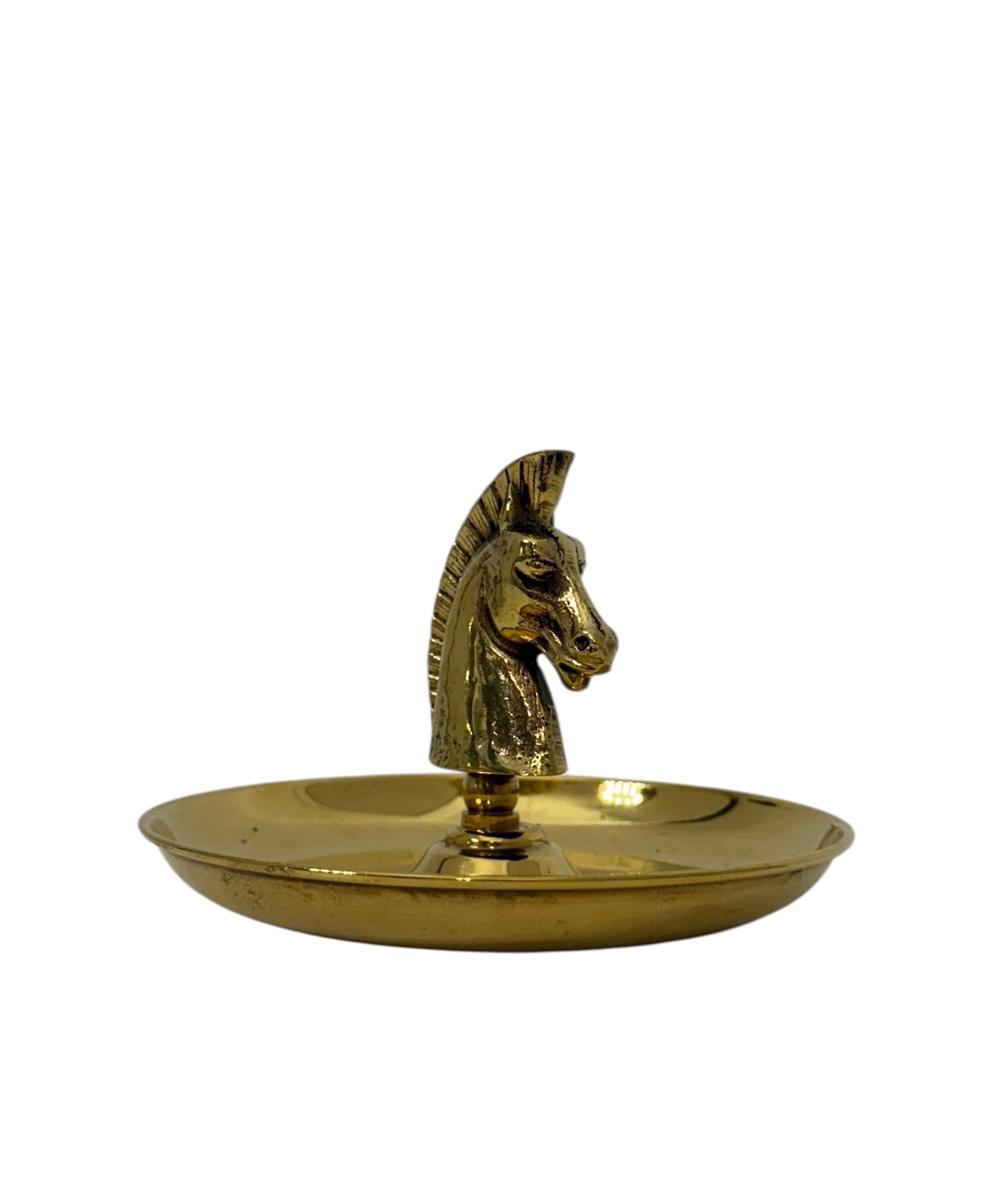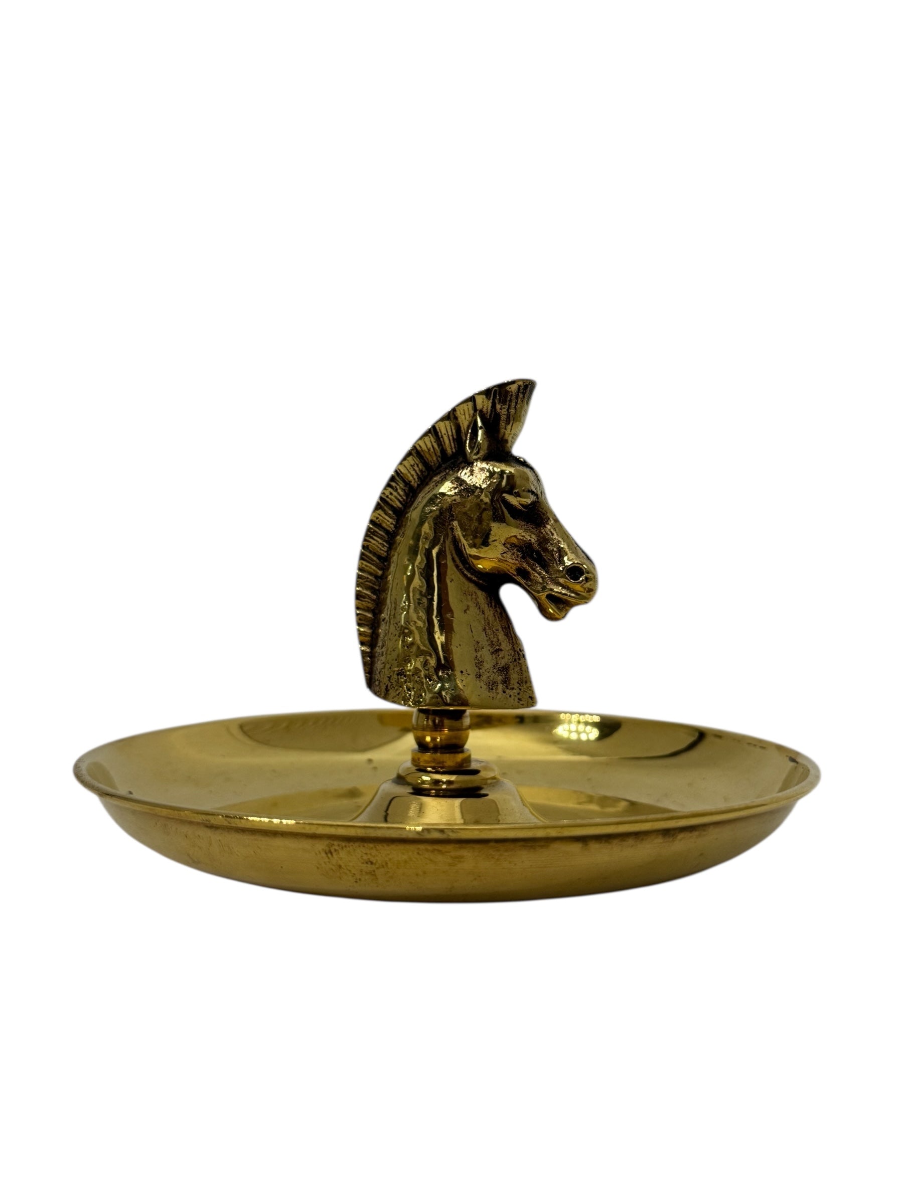Vintage Brass Horse Head Trinket Dish – Equestrian Vanity or Desk Catchall