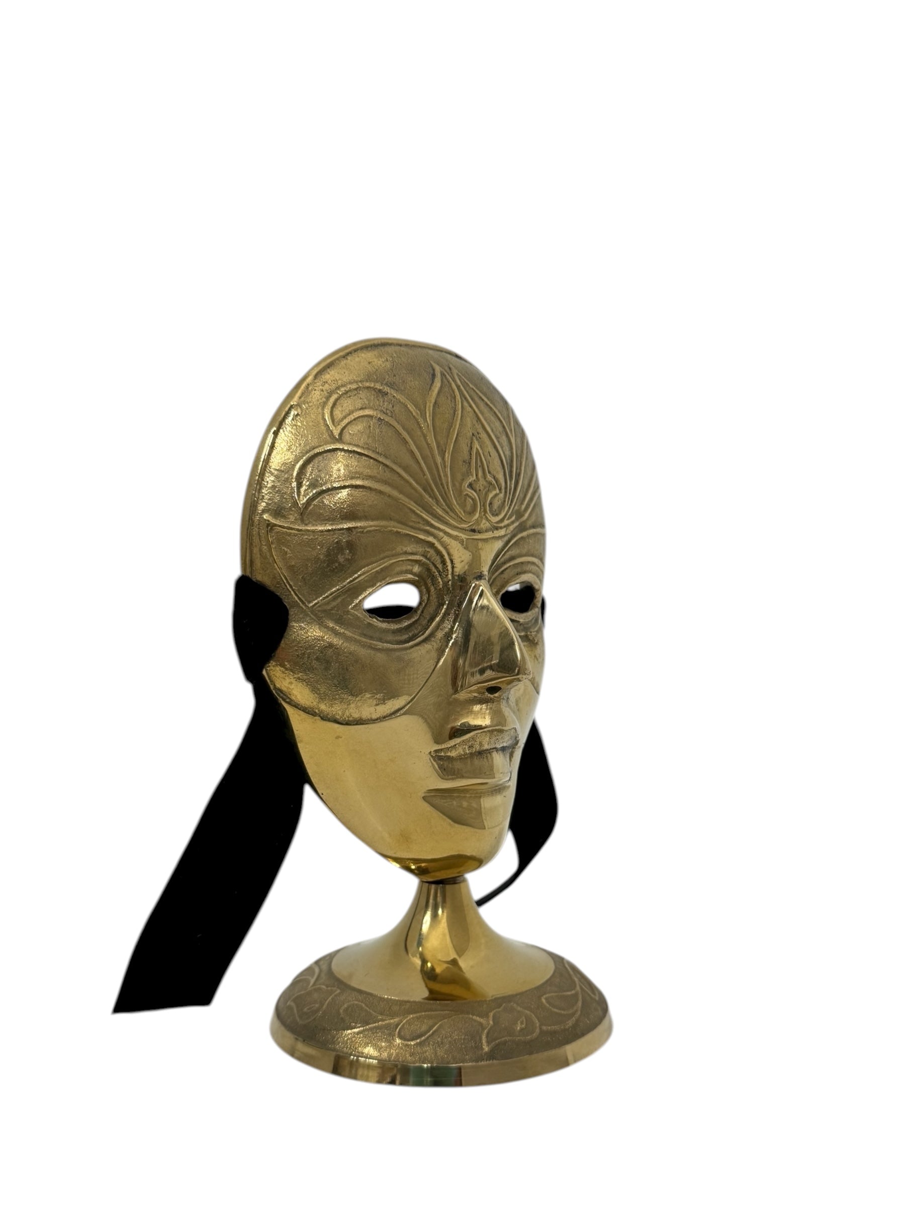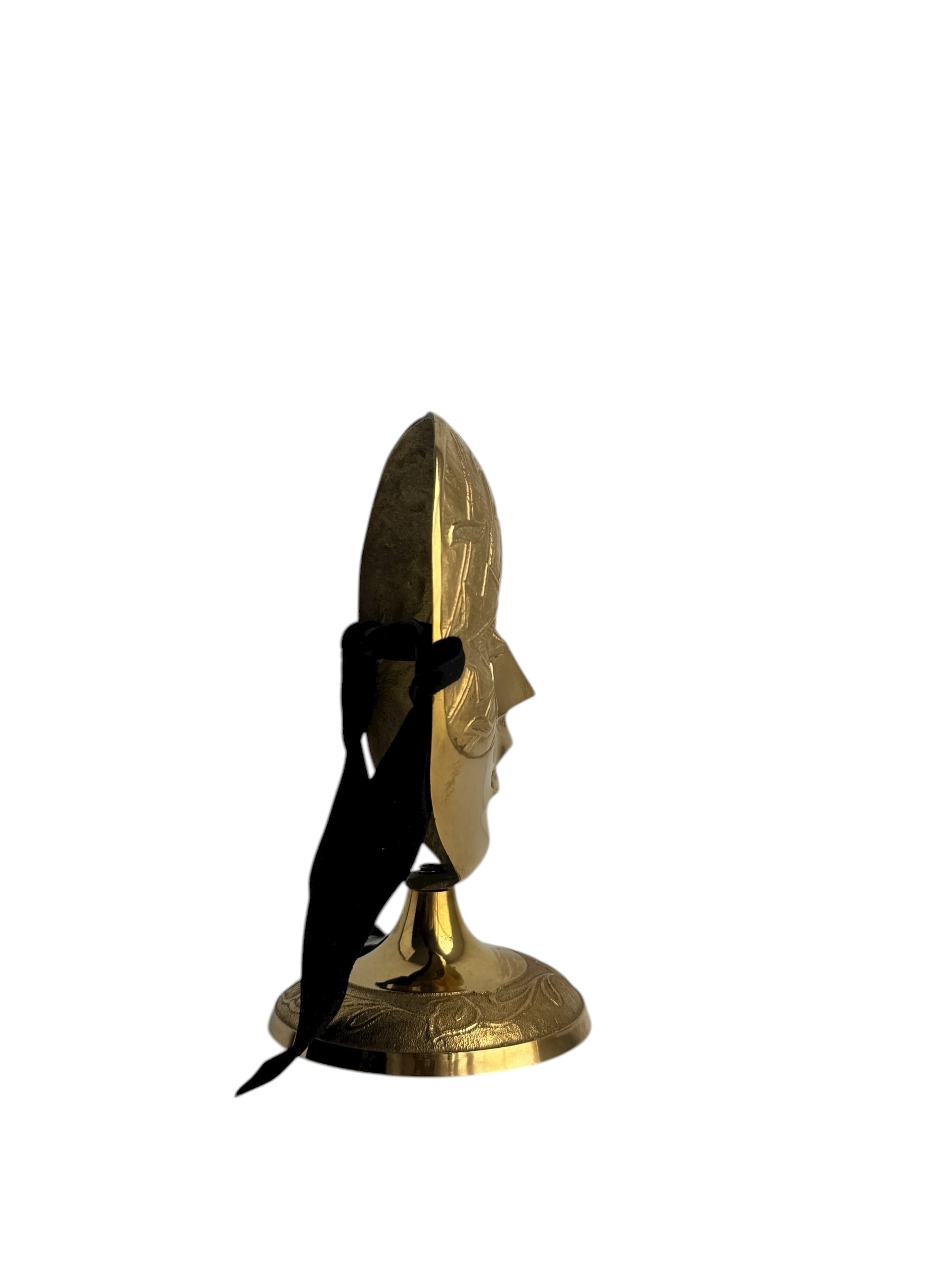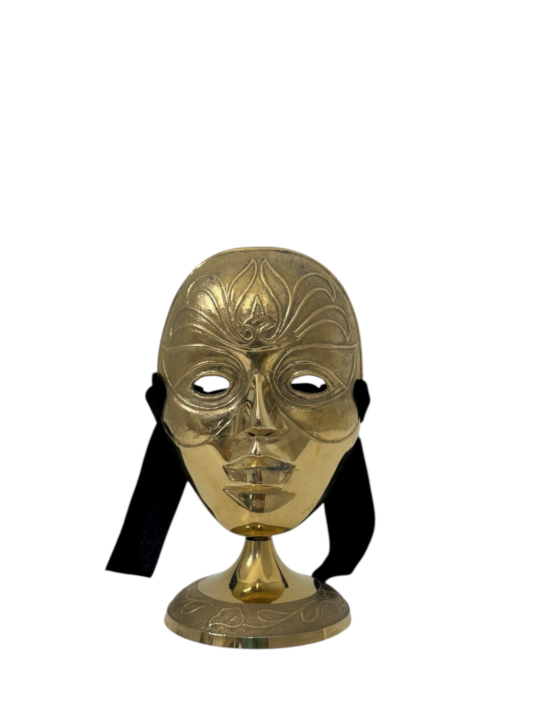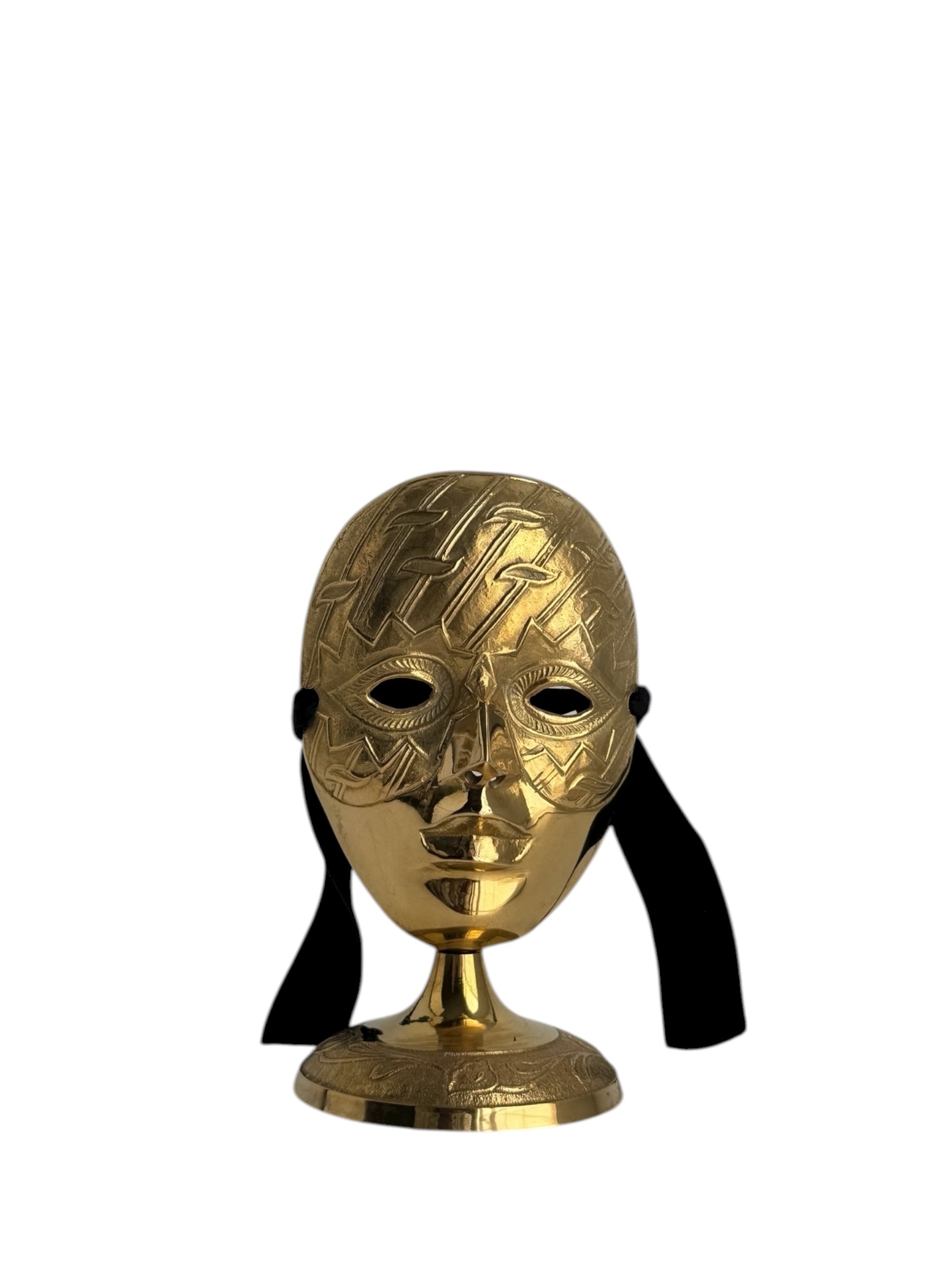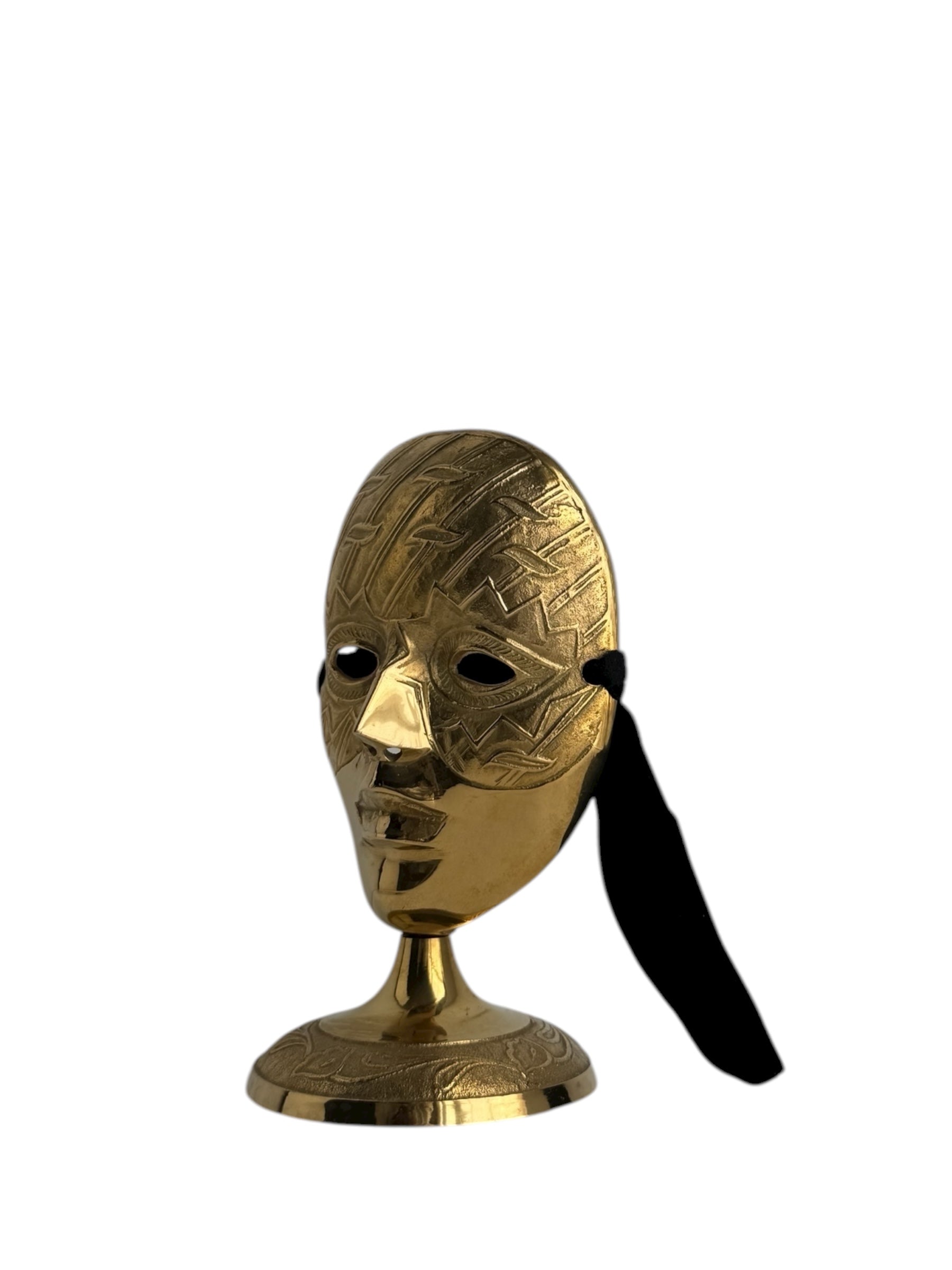 Vintage Brass Mask Sculpture on Stand