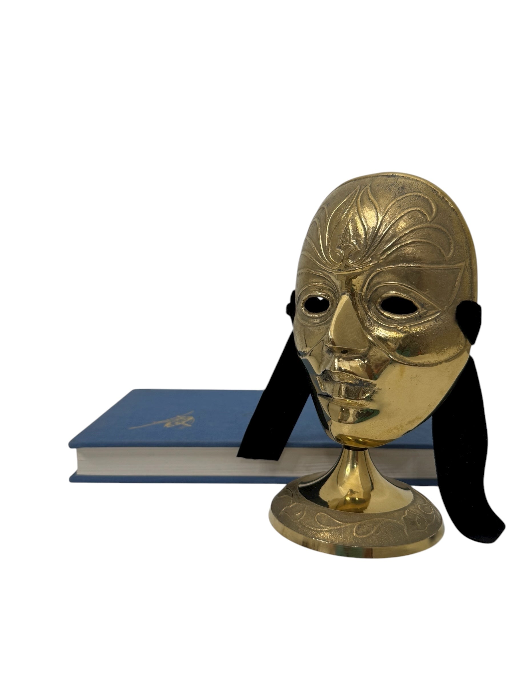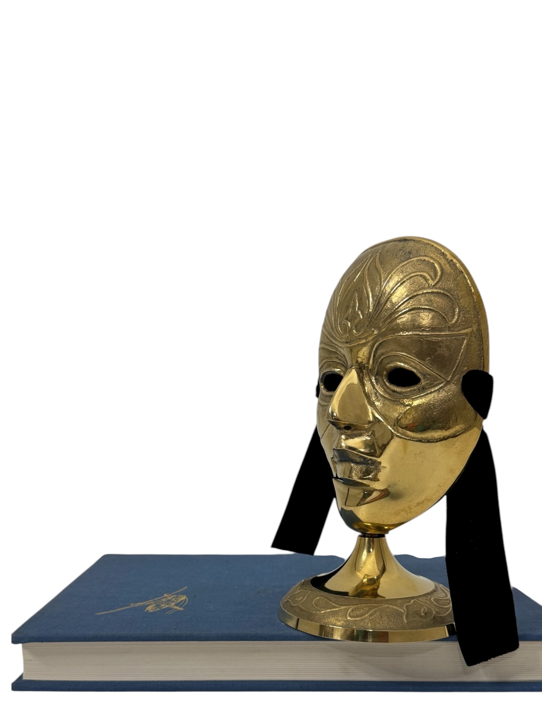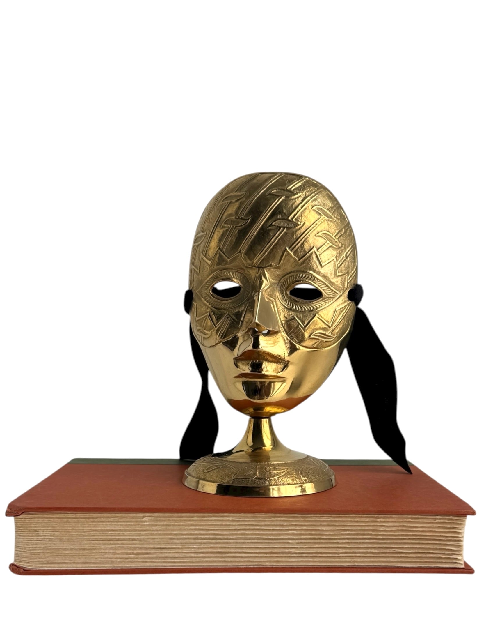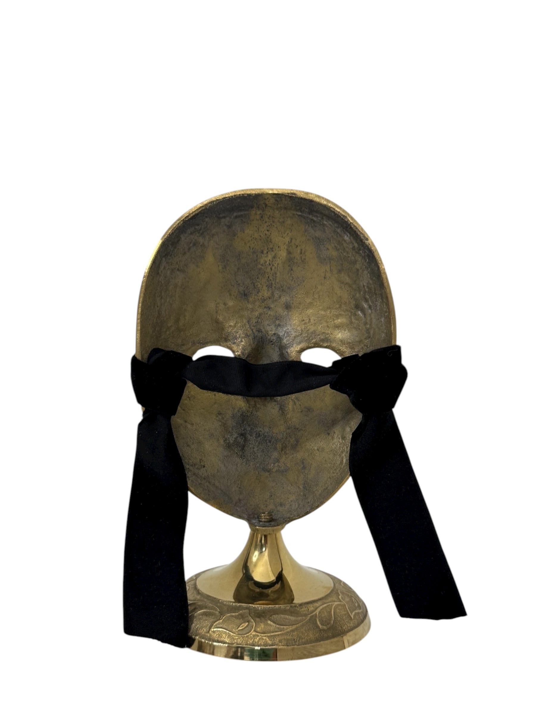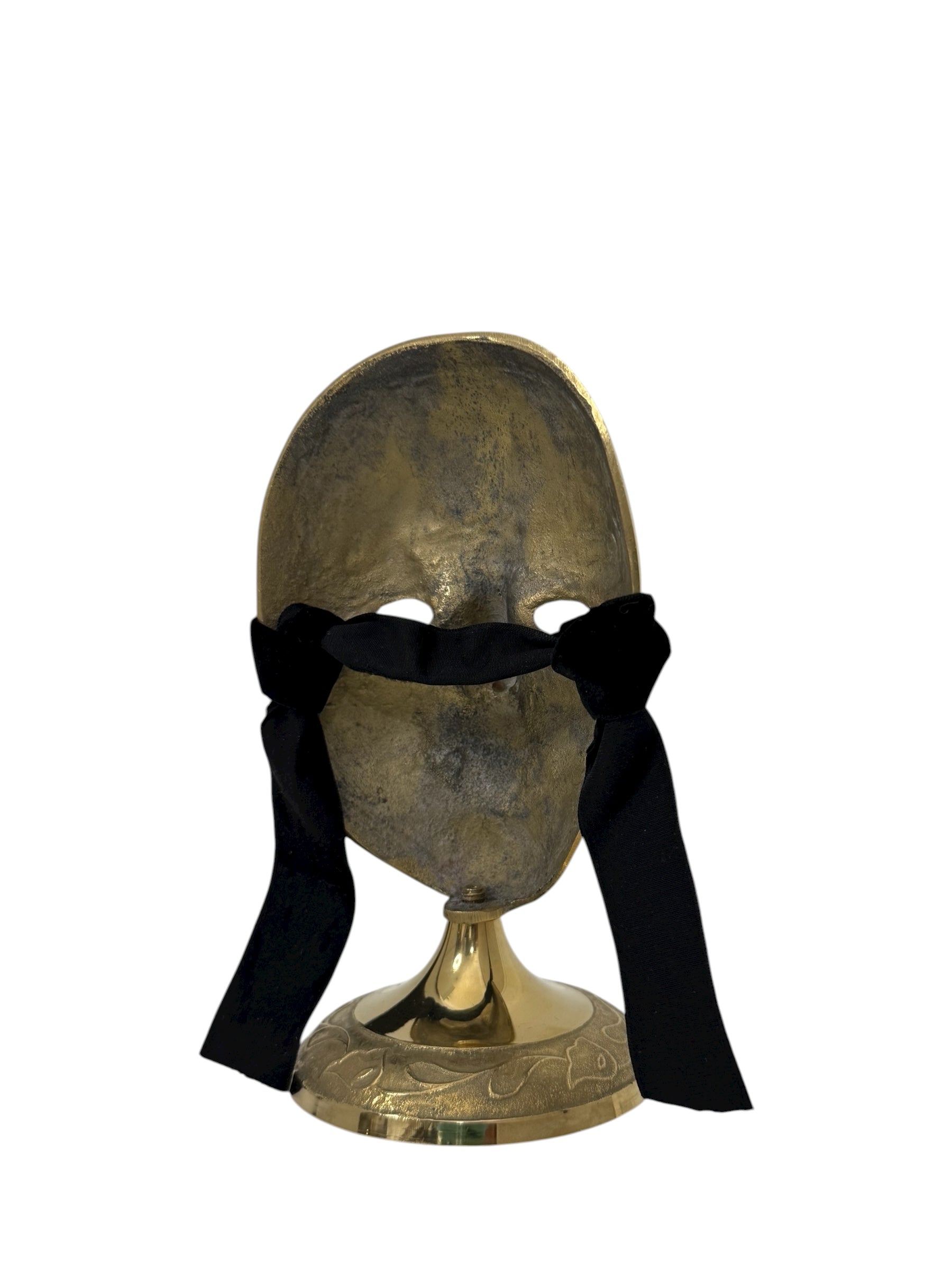 Vintage Brass Mask Sculpture on Stand
