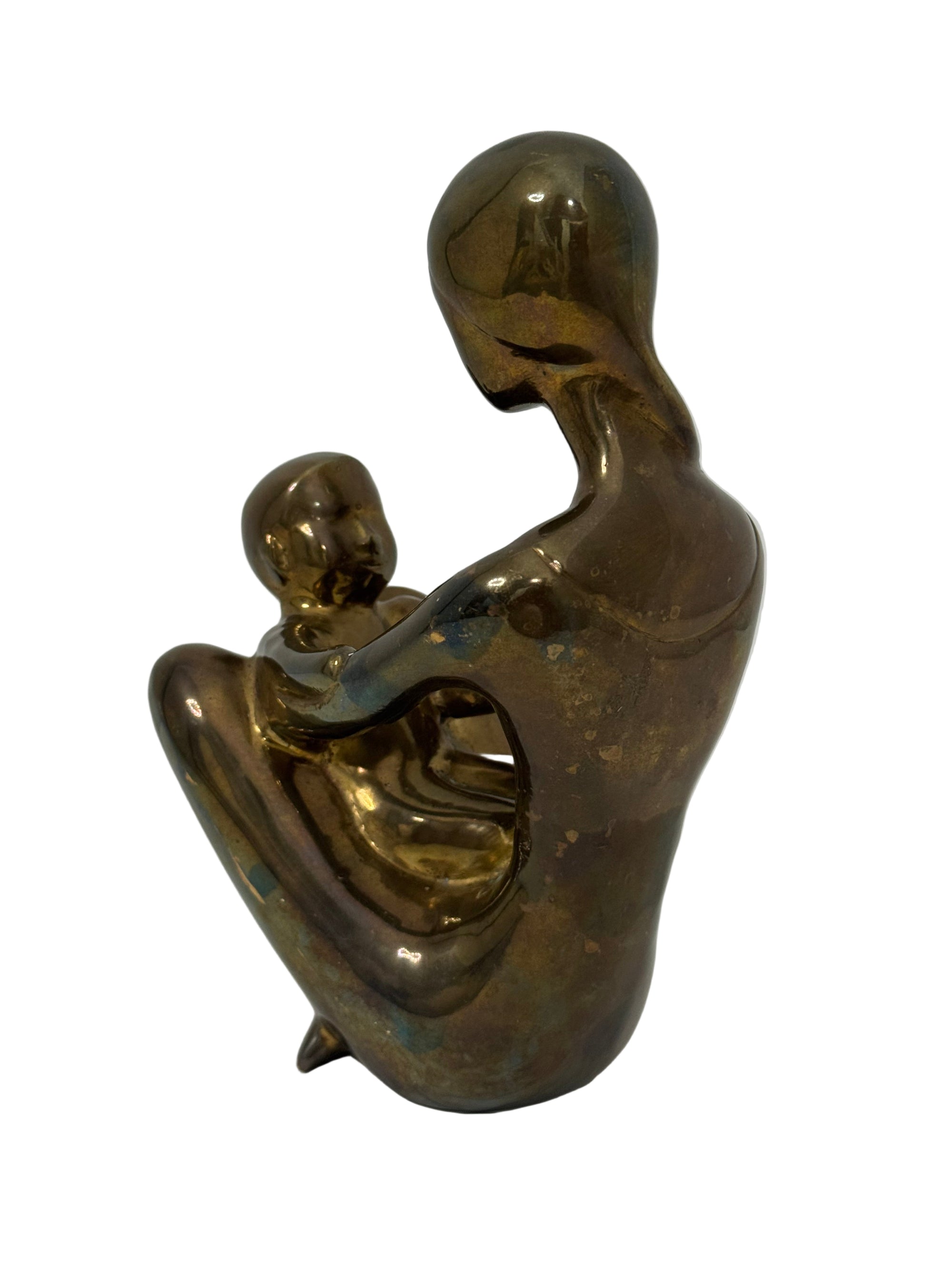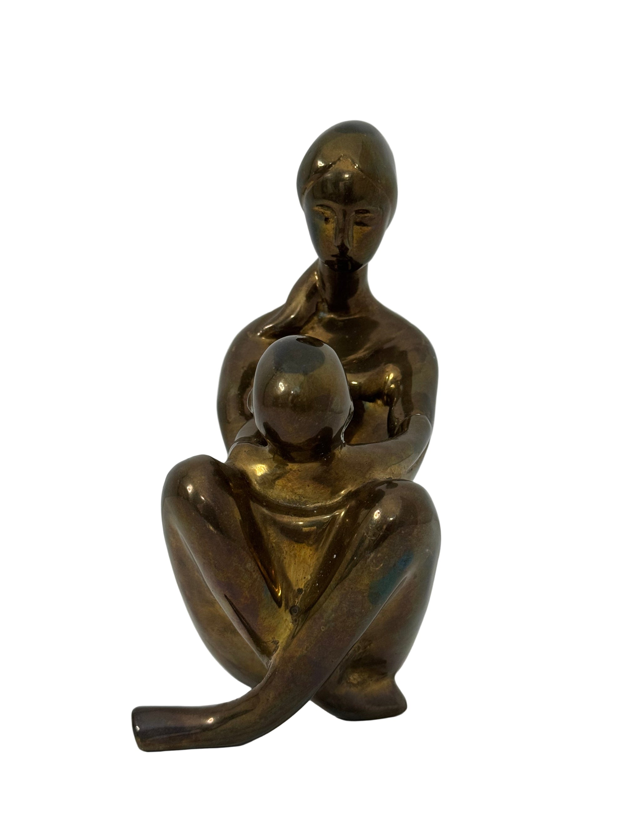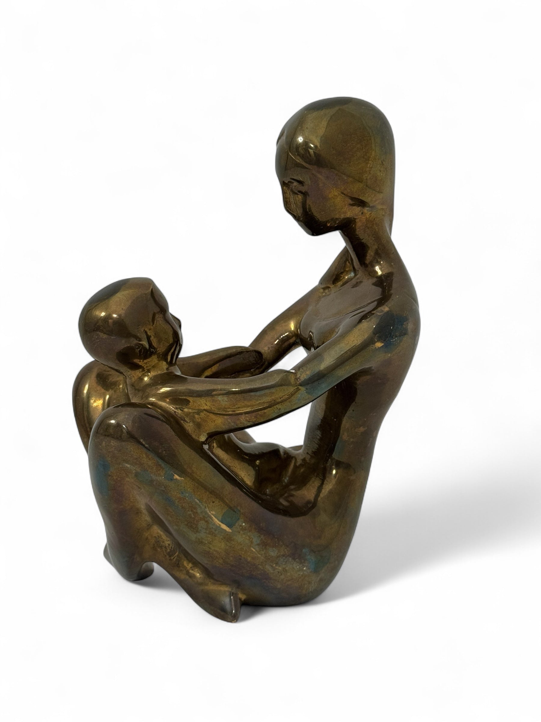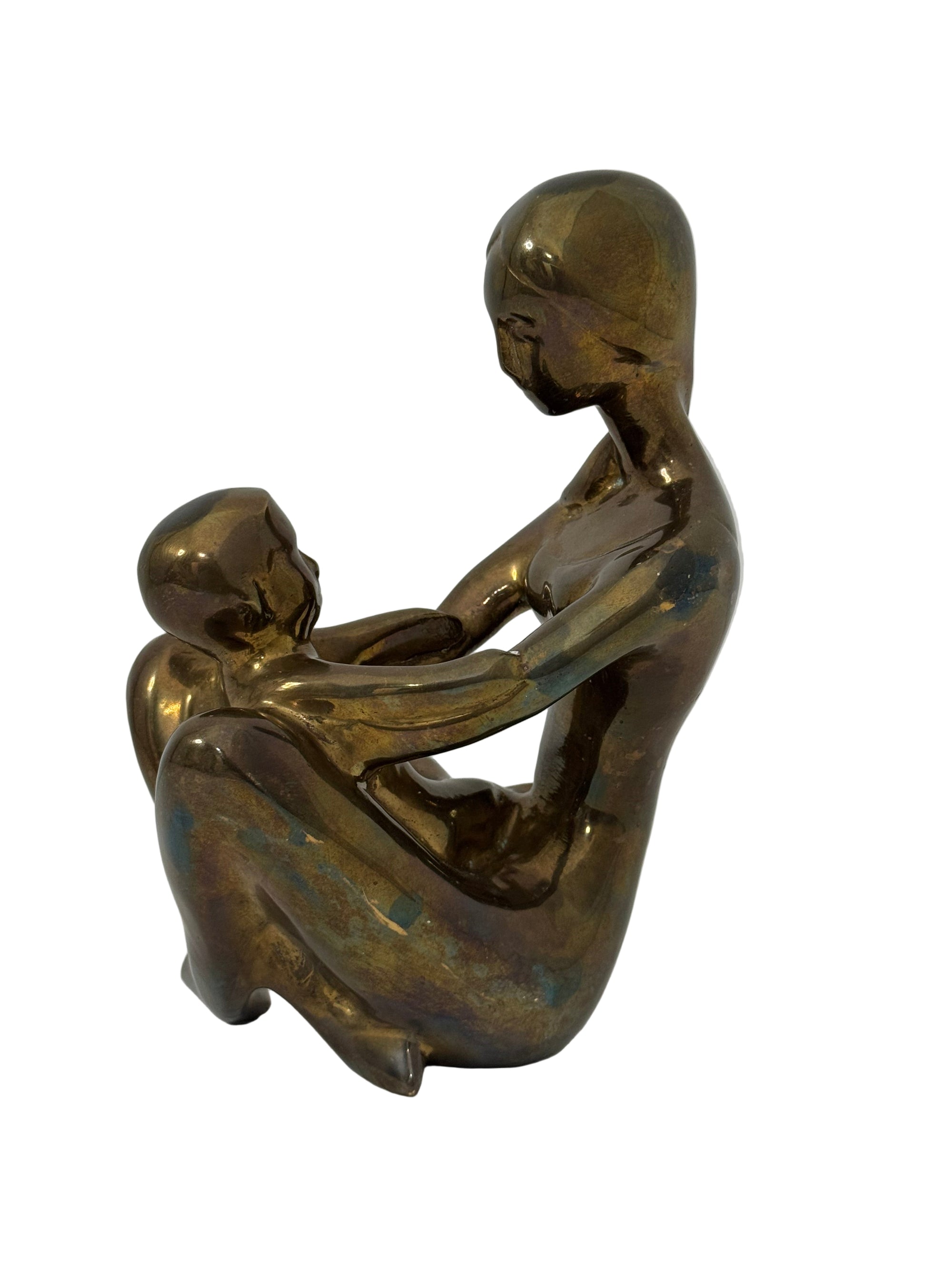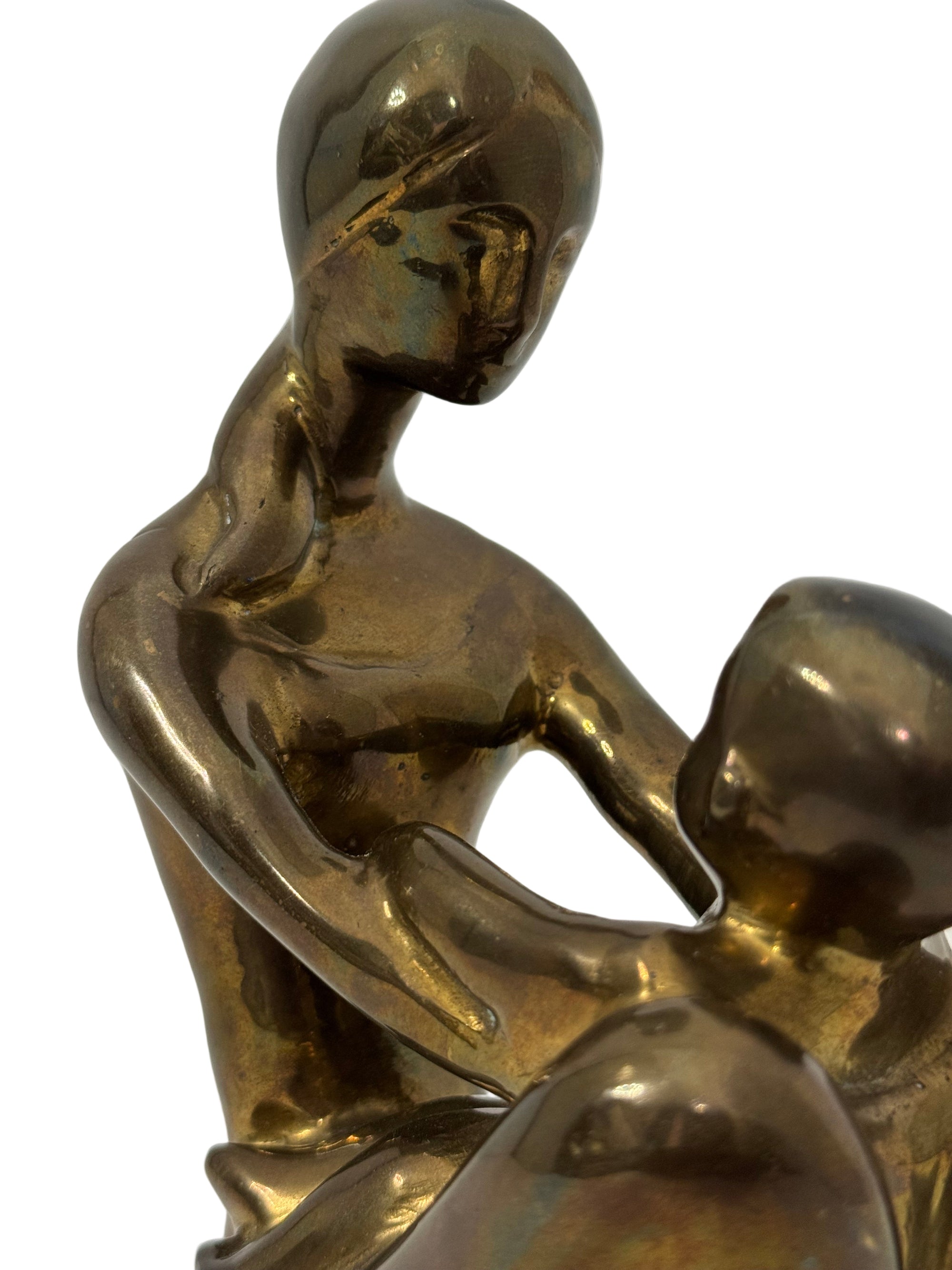 Vintage Brass Mother and Child Sculpture – Mid-Century Modern Family Figurine